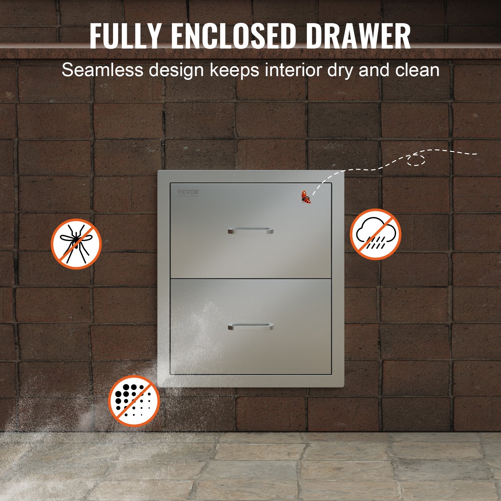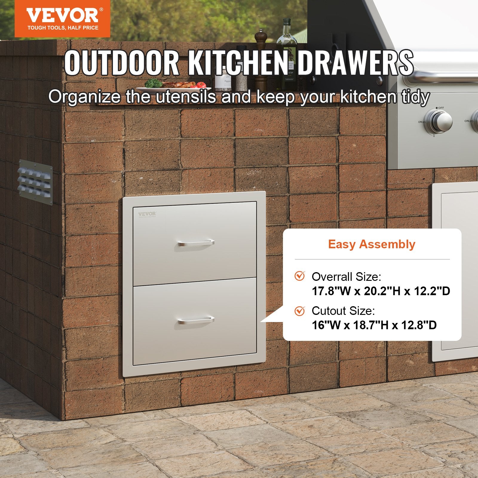 Outdoor Kitchen Drawers 18W x 20.6H x 12.7D Inch, Flush Mount Double BBQ Drawers Stainless Steel with Handle, BBQ Island Drawers for Outdoor Kitchens or Patio Grill Station