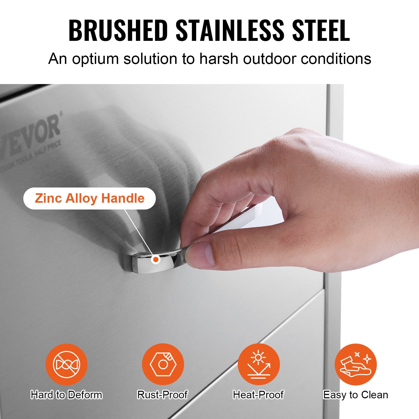 - Premium Details: The stainless steel BBQ drawers were built with a lot of consideration, providing you maximum convenience and security. Integrated high-end design, no drilling required for installation, good for sealing. Round corners can reduce the scratch while using; a sleek handle can allow you to open the drawer effortlessly; the seamless design can keep your inside items dry and secure.