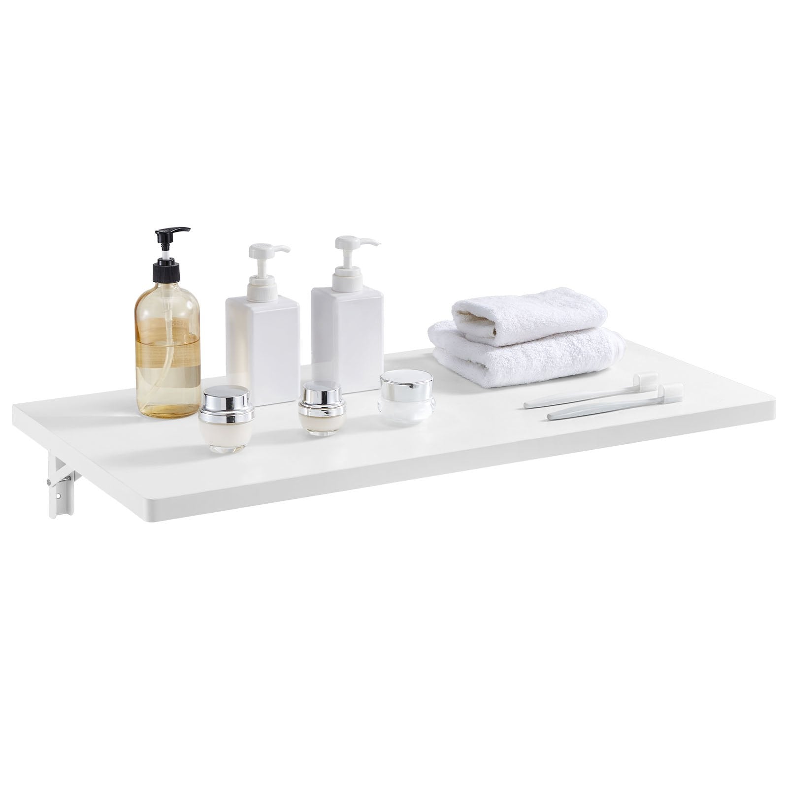 Wall Mounted Folding Table, 31.5 x 15.7 inches Wall Mount Table, Floating Desk with Iron Bracket, Fold Down Desk for Small Spaces, Home Office, Dining, Laundry Room, Kitchen, Bar, White