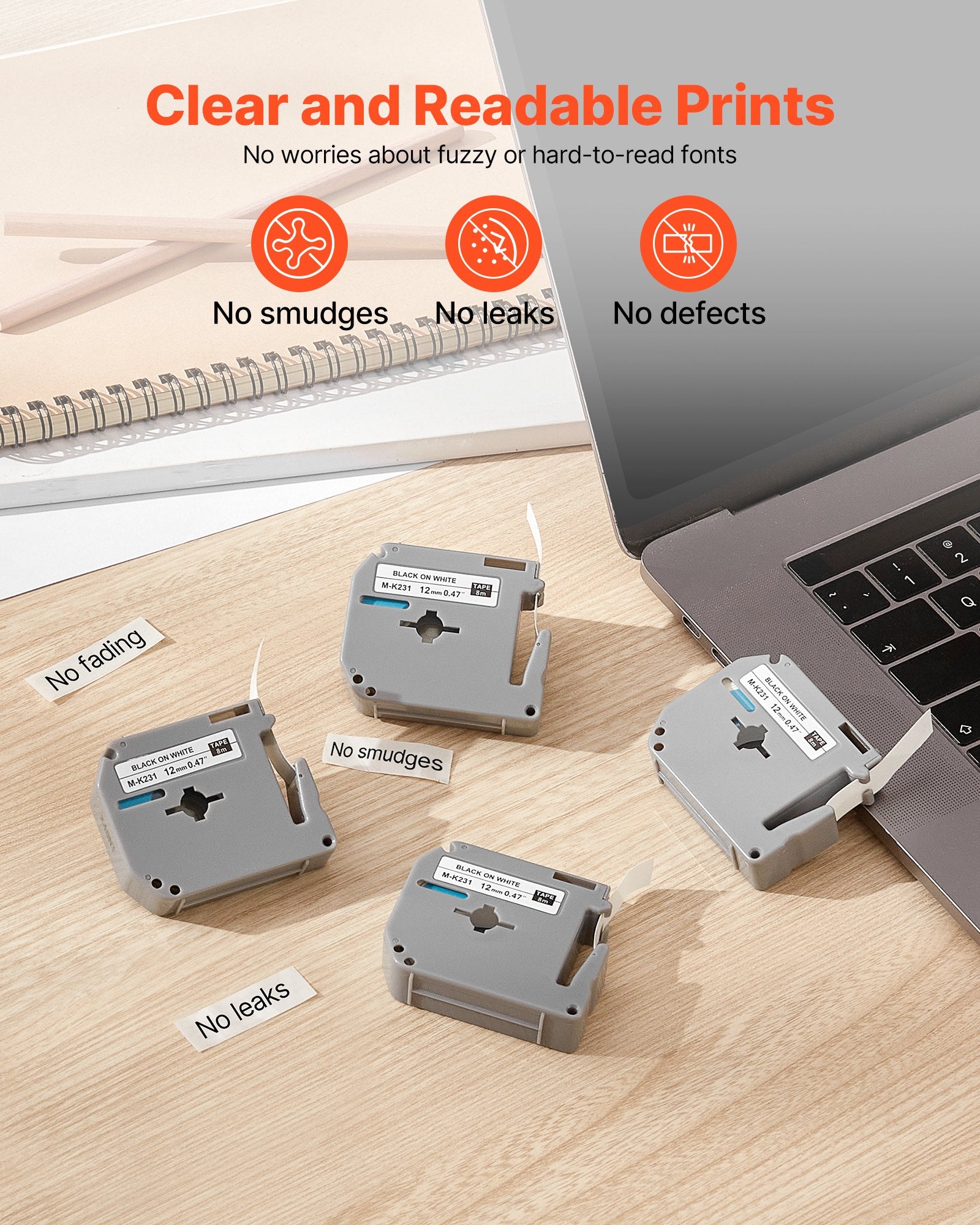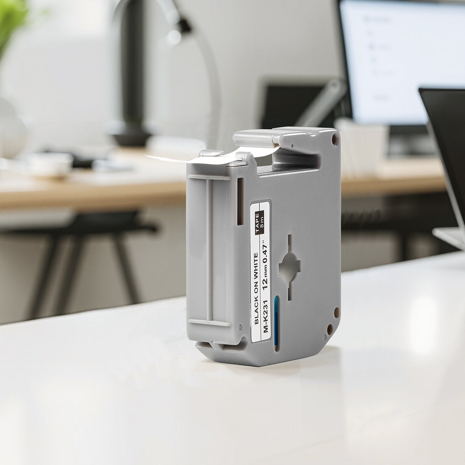 - Wide Compatibility: This black-on-white label maker tape is compatible with Brother M-K231 ribbon, meeting all your diverse printing needs effortlessly. Each roll is 12 mm wide and 8 m long, fitting Brother machines like PT-M95, PT-90, PT-70BM, PT-85, PT-80, and more. It’s your go-to label tape for all your office and home organizing needs. NOTE: To easily peel the sticker: just press the backing paper together and tear it open from the middle.