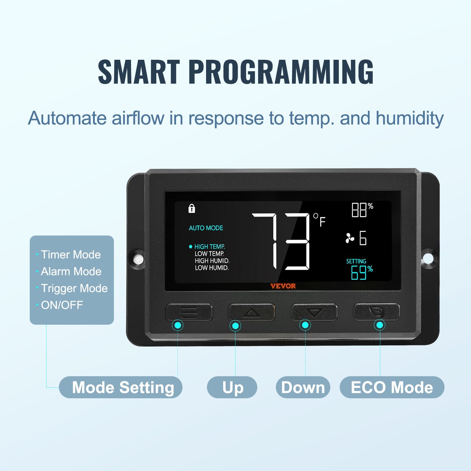 Shutter Exhaust Fan, 305 mm with Temperature Humidity Controller, EC-motor, 904 CFM, Variable Speed Adjustable Wall Mount Attic Fan, Ventilation and Cooling for Greenhouses, Garages, Sheds