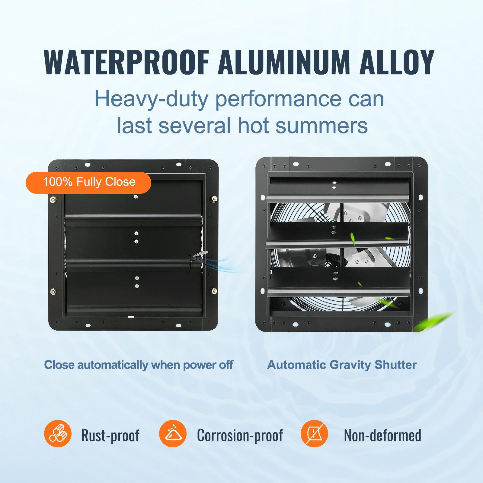 - Automatic Shutdown: The high-quality materials used in the housing and grille ensure that the fan maintains excellent performance even in harsh weather conditions like rain and snow. The louvered fan automatically shuts down during the winter when not in use to help maintain indoor temperature.