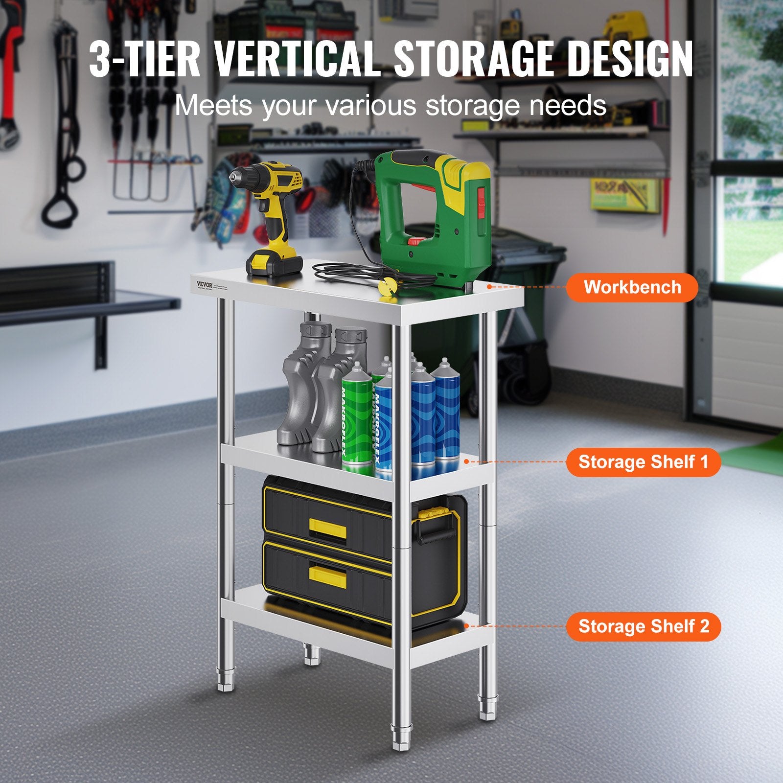 Stainless Steel Food Prep Table Commercial Kitchen Work Table 35.6x61 cm