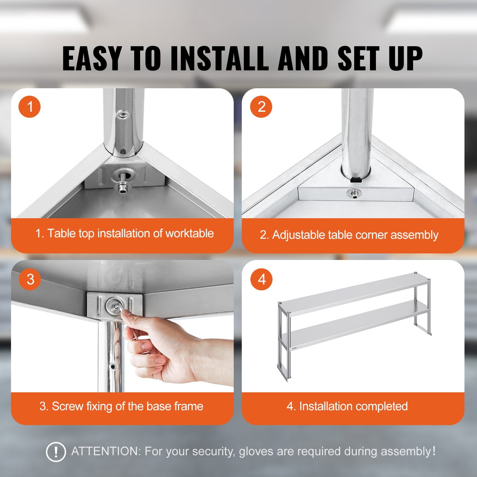 - User-Friendly Design: This adjustable double layer work table offers the most user-friendly and practical functionality. Simply adjust the shelf height with screws to accommodate items of different sizes.