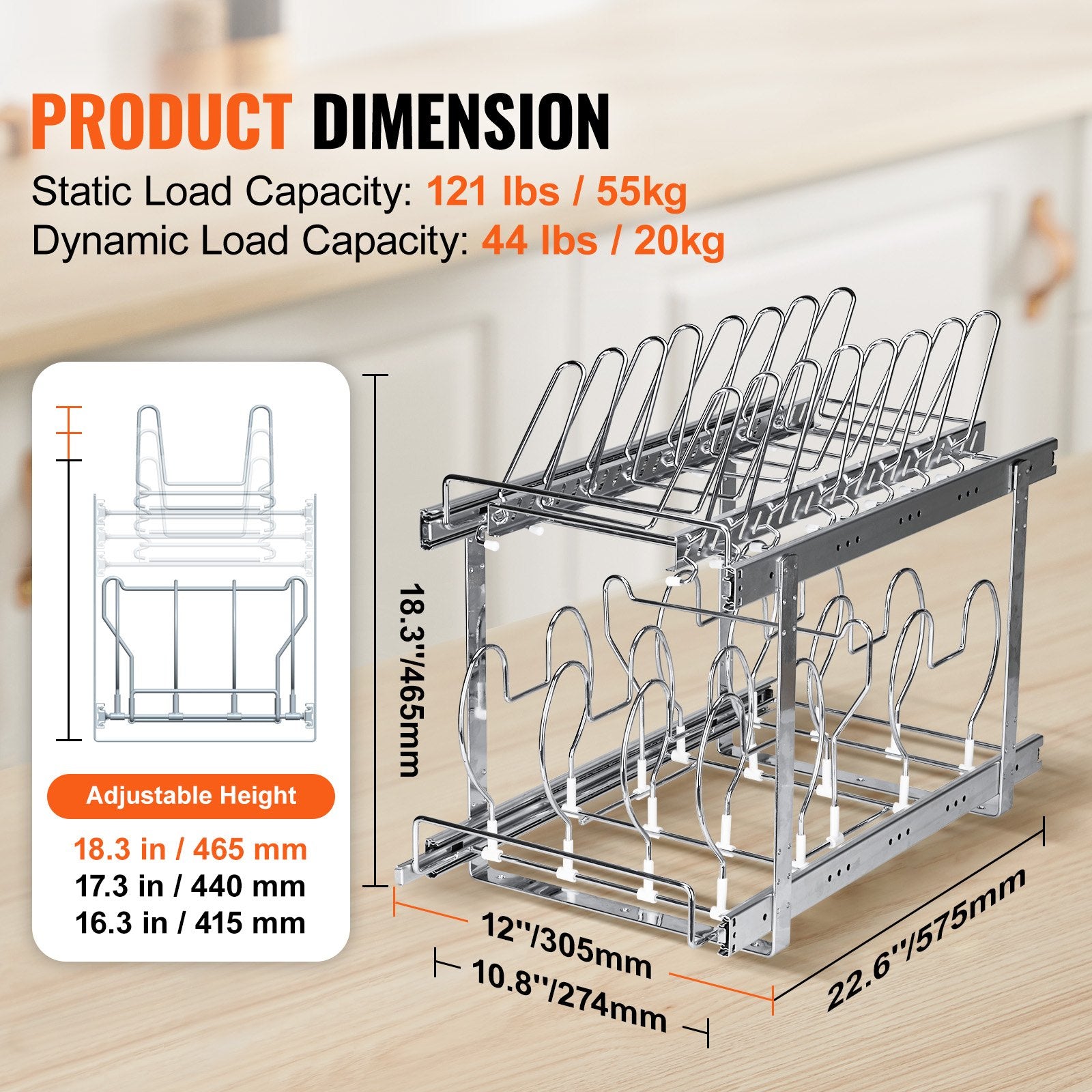 Pan and Pot Rack, 2-Tier Expandable Pull Out Under Cabinet Organizer, Cookie Sheet Baking Pans Tray Racks, Adjustable Wire Dividers, Steel Lid Holder for Kitchen Cabinet & Pantry Storage, 12"W