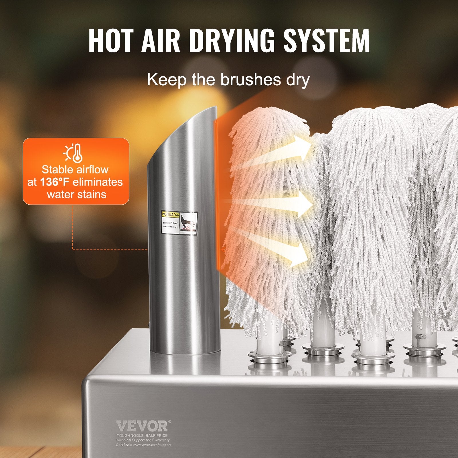 - Hot Air Drying Technology: Equipped with a built-in 136°F stable airflow hot air drying system, this polishing machine quickly evaporates water, effectively eliminating water stains while keeping the brushes dry to extend their lifespan.