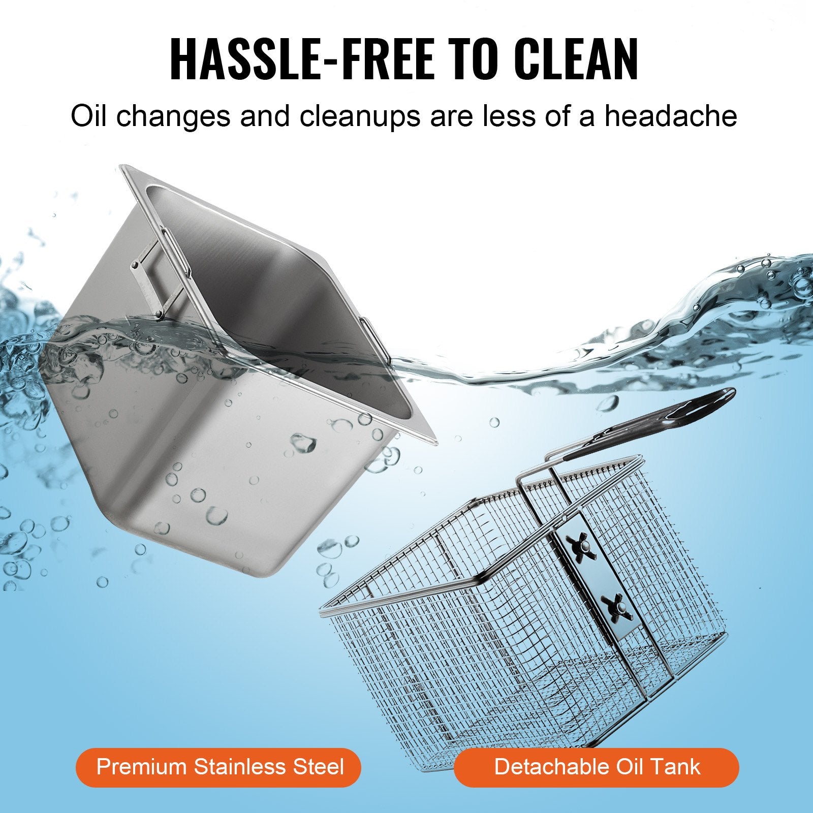 - Easy to Clean: All components of this electric deep fryer are easy to remove, including the oil tank. And guess what? The stainless steel exterior is easy to wipe clean. Note: 1. Please peel off any white plastic protective film from the surface. 2. Always make sure the machine is cool and dry before cleaning.