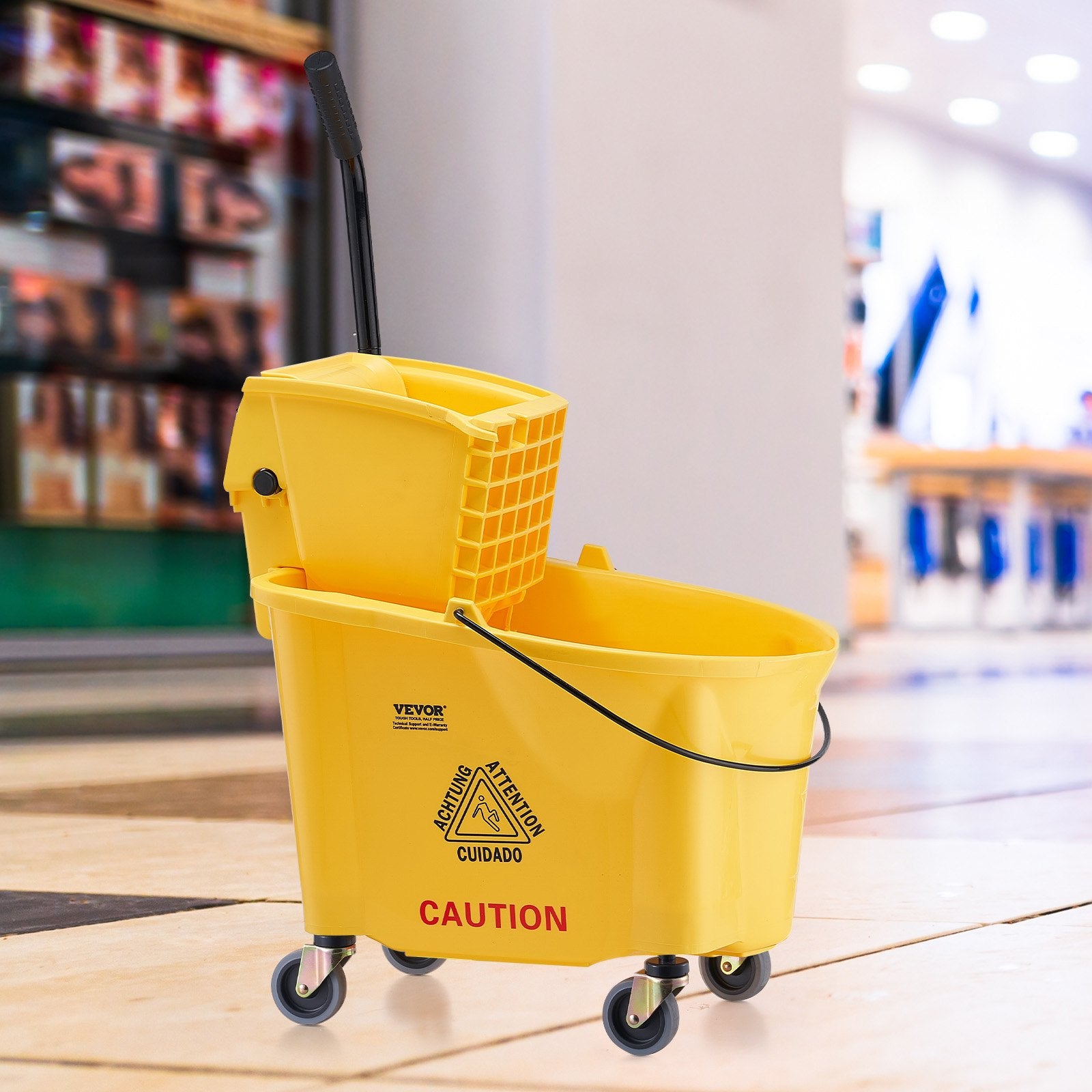 Mop Bucket with Wringer, 35 Qt. Commercial Mop Bucket with Side Press Wringer, Side-Press Mop Bucket and Wringer Combo on Wheels, for Professional/Industrial/Business Floor Cleaning, Yellow