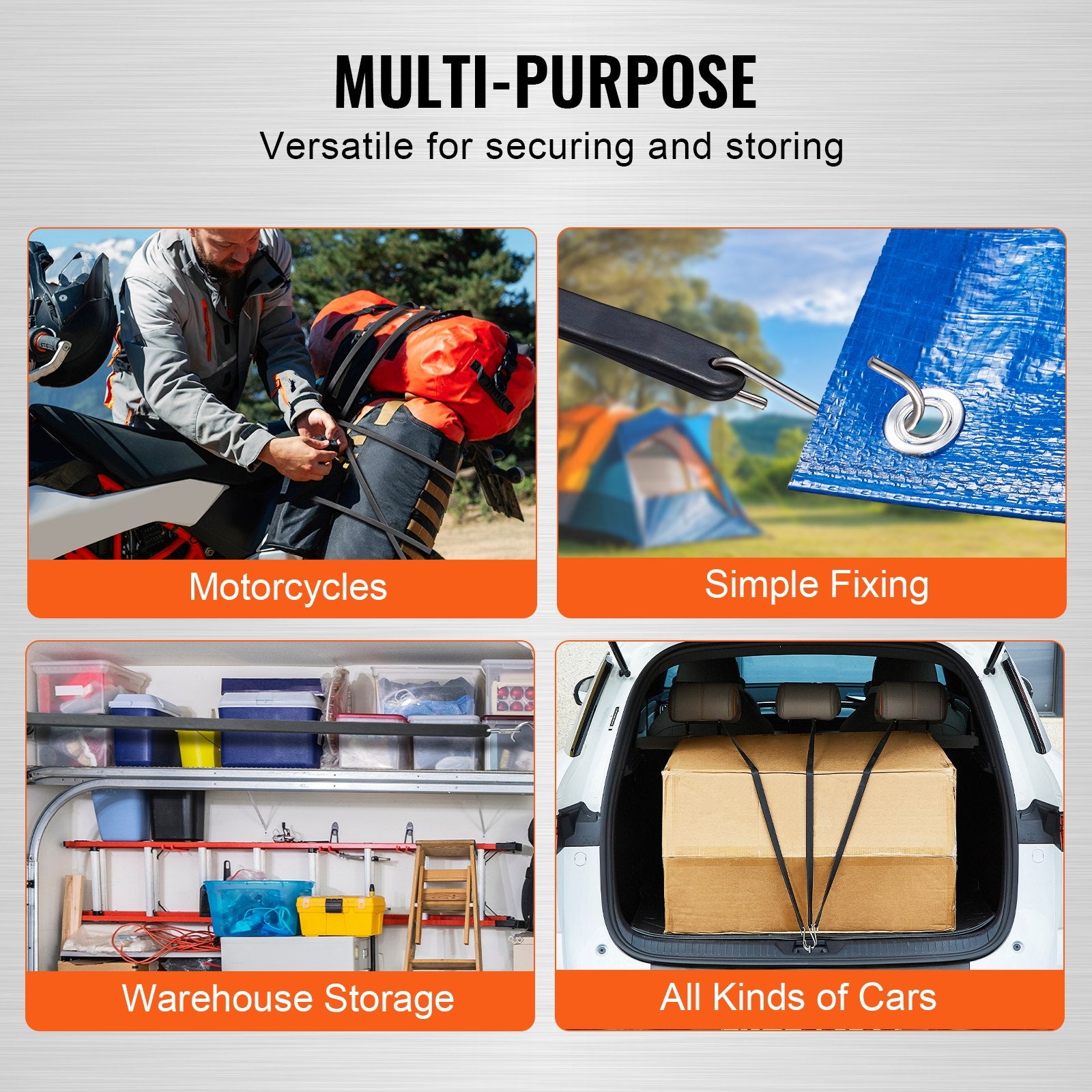 - Versatility: Suitable for home organization, outdoor adventures, or logistics, these bungee straps easily handle any task, fulfilling a wide range of needs for securing or storing items.