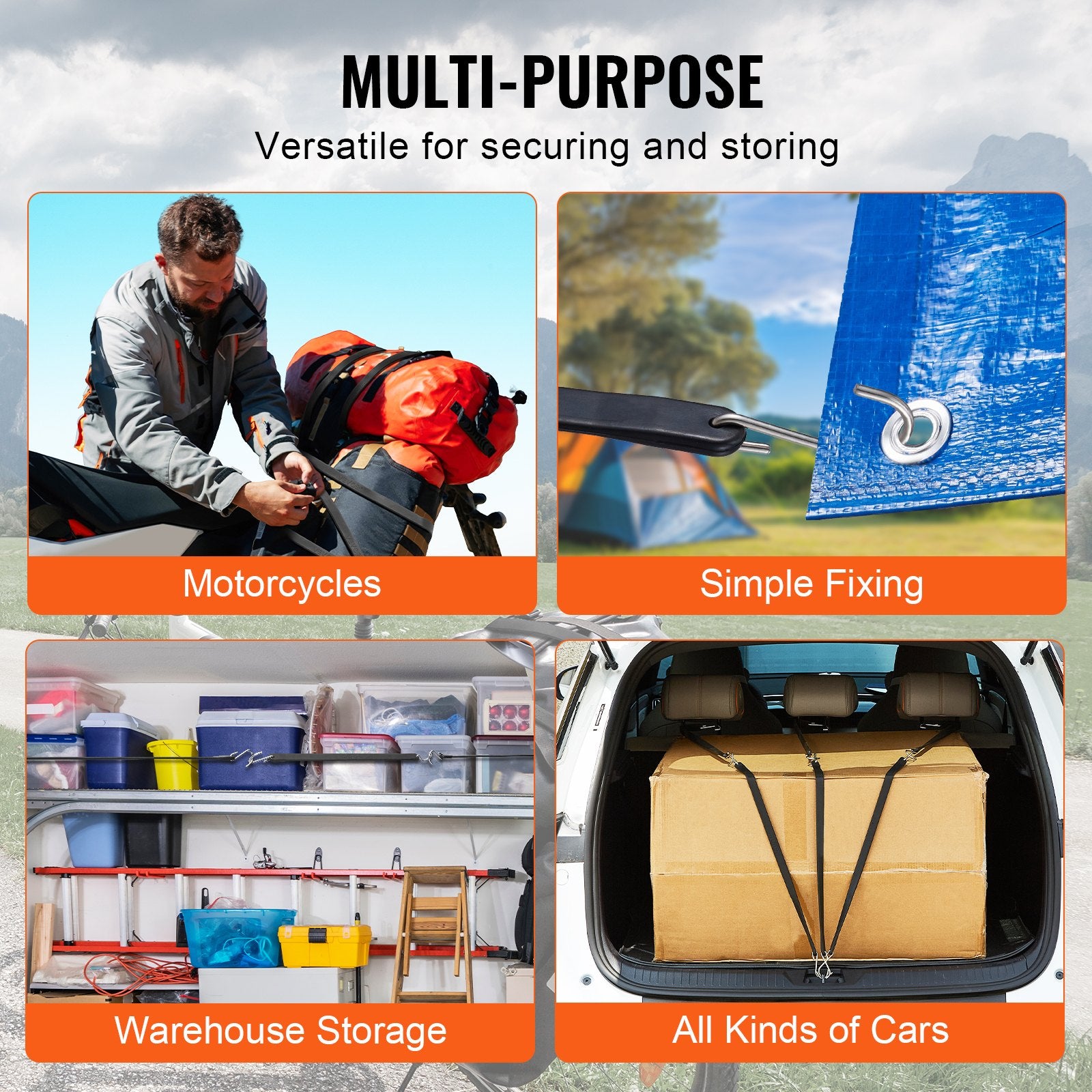 - Versatility: Suitable for home organization, outdoor adventures, or logistics, these bungee straps easily handle any task, fulfilling a wide range of needs for securing or storing items.