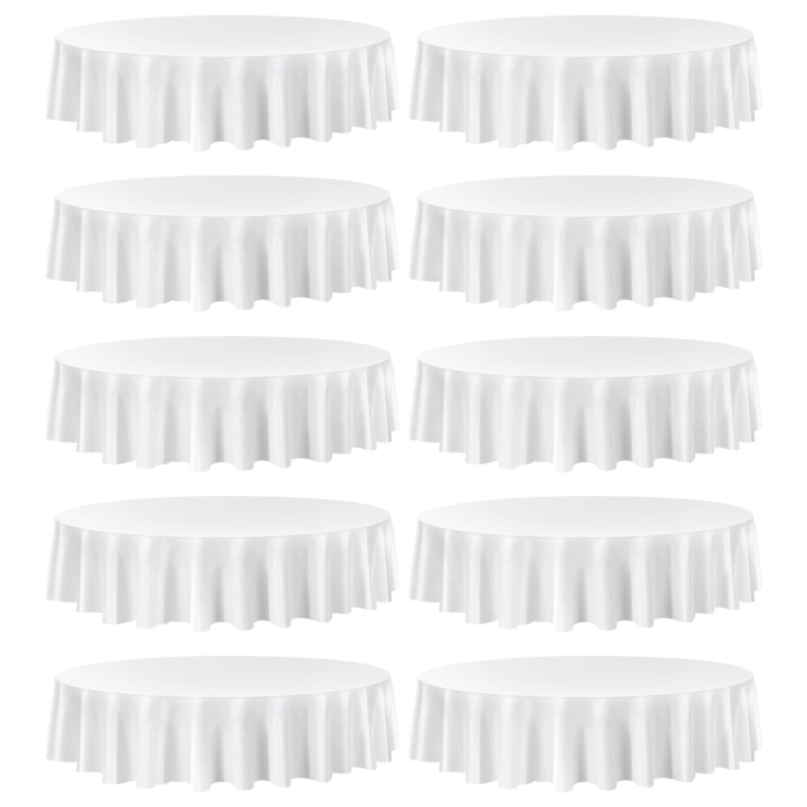 - Round Tablecloth Set: This round tablecloth helps protect against spills, stains, and scratches. The package includes 10 packs of white polyester round tablecloths, each 90 inches in diameter. Stylish and versatile. Please measure your table size before purchase and refer to our size chart for the best fit