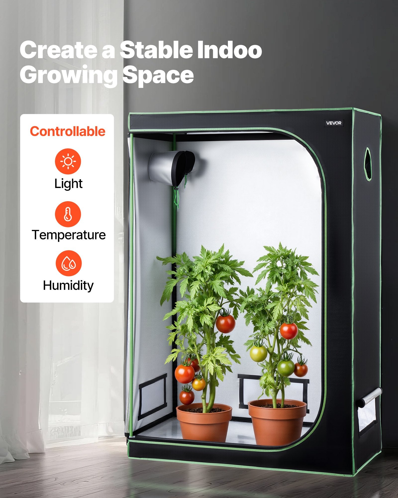 - Indoor Grow Tent: Build your ideal indoor gardening space with this plant grow tent. Inside the tent, you can control lighting, temperature, and humidity, making it ideal for growing flowers, fruits, herbs, or vegetables. Available in various sizes to meet different planting needs