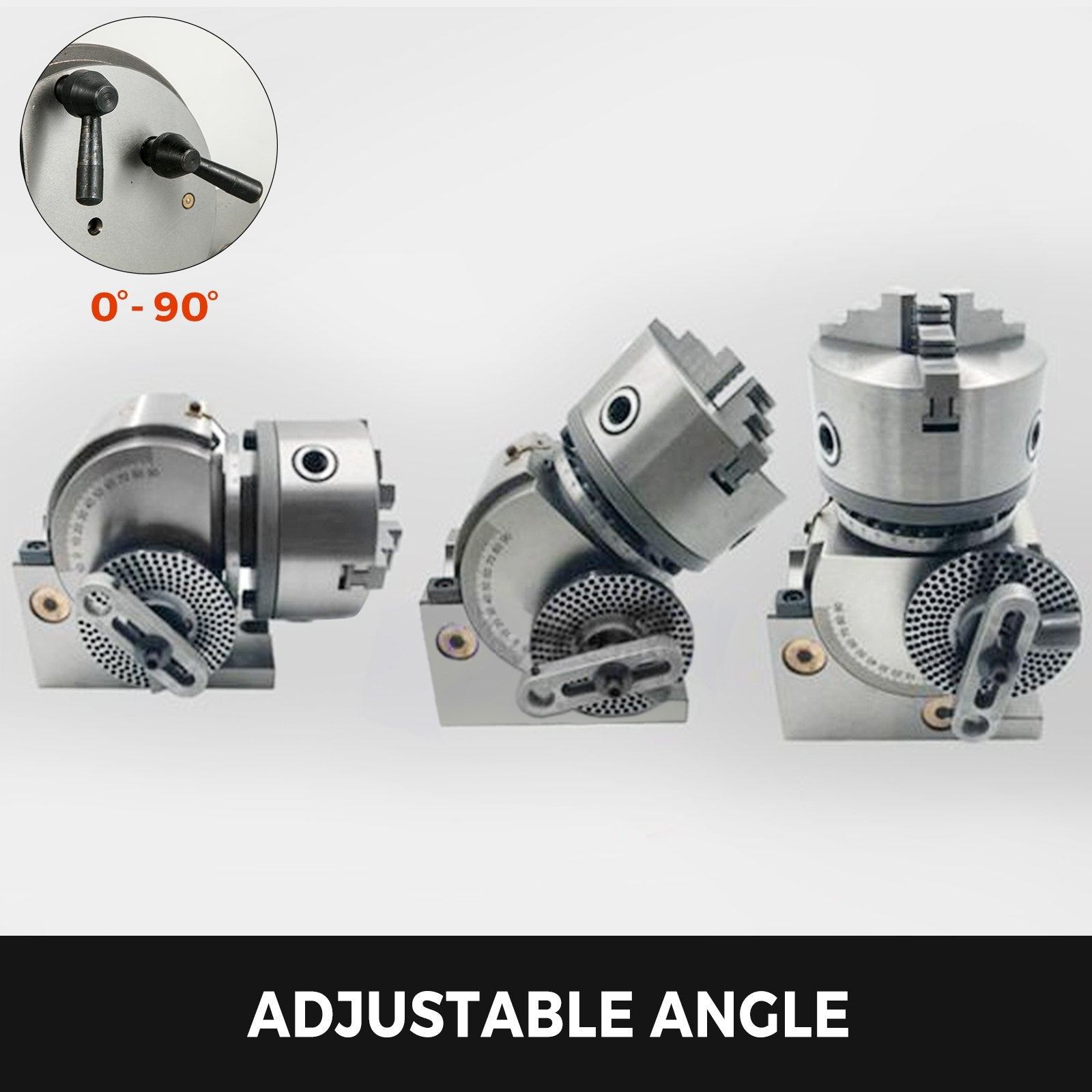 - 【ADJUSTABLE DIVIDING HEAD】- The semi-universal dividing head features 4" 3-jaw chuck, Spindle Hole Diameter: 18mm. The headstock is adjustable from the horizontal position to 90 degrees upward. Center Height: 4"/100mm. Free 3 more jaws for 4" chuck.