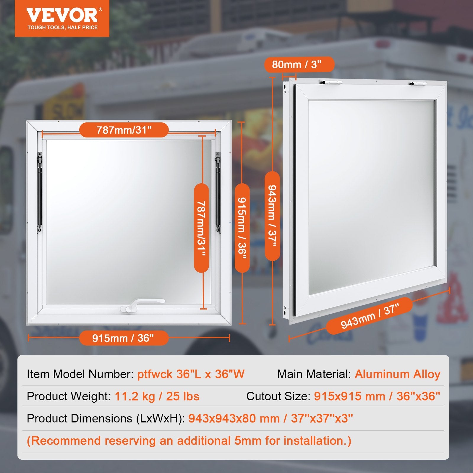 - Precision Opening: The 36"L x 36"W multifunctional concession window is aesthetically pleasing and practical, featuring precise dimensions, and is easy to process, install, or dismantle. Available in a variety of sizes, it's widely used in food trucks, concession stands, dining cars, BBQ trailers, mobile dining units, etc., and is perfect for participating in food festivals.