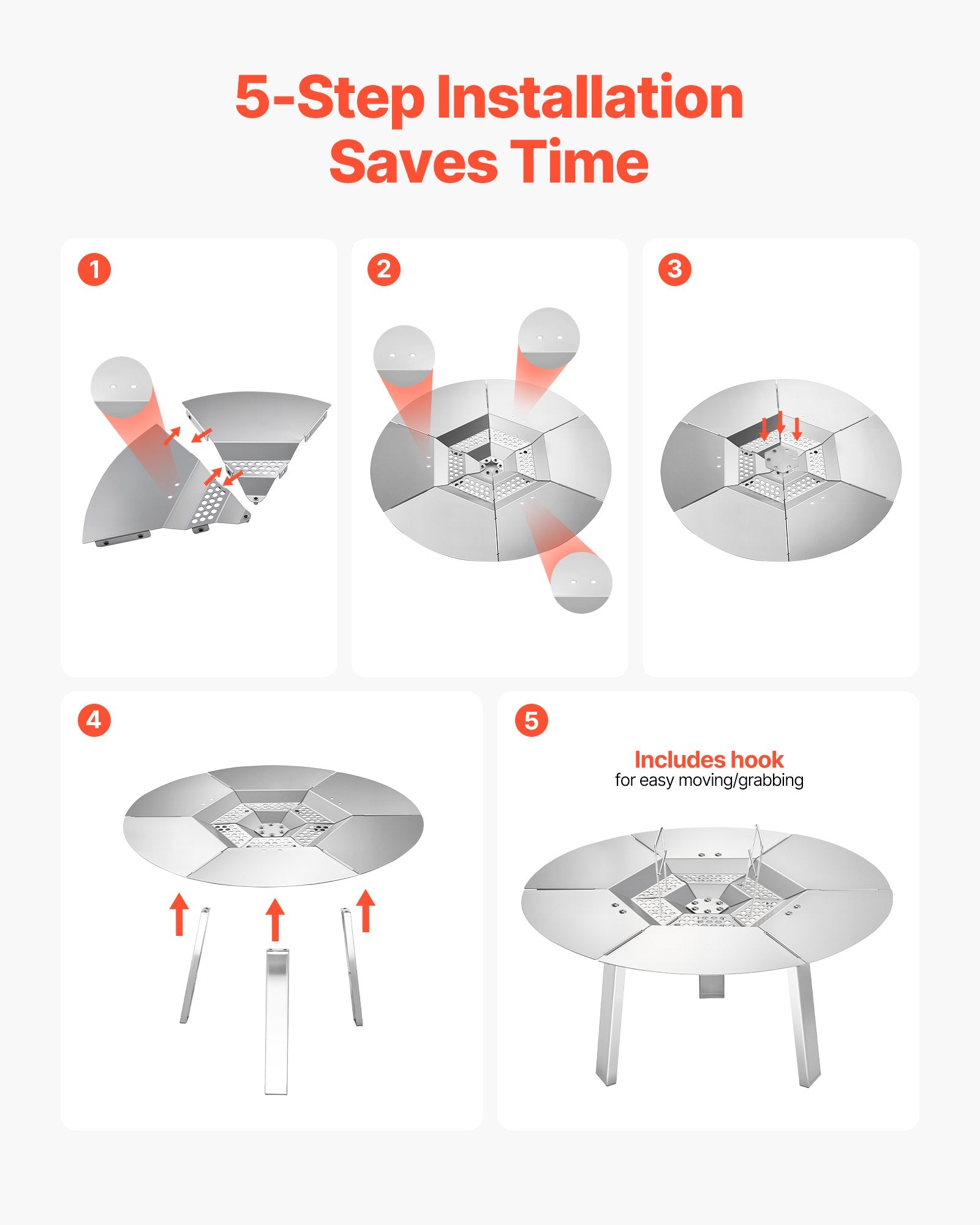 - 304 Stainless Steel Material: Made of rust-resistant 304 stainless steel, this bonfire heat deflector is sturdy, heat-resistant, and corrosion-proof. Smooth edges enhance security, and it remains stable in both fixed fire pits and outdoor camping