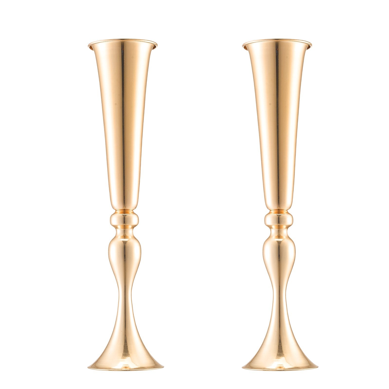 2PCS 56cm/22.05” Tall Wedding Flower Vase, Metal Wedding Trumpet Centerpiece, Gold Floral Stand Display Rack for Tables Wedding Dinner Party, Anniversary Ceremony Birthday Event Decor