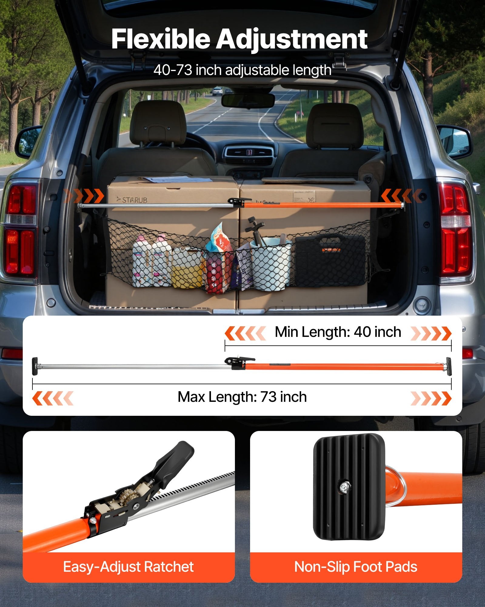 - Flexible Length Adjustment: This ratcheting cargo stabilizer bar can be flexibly adjusted in length between 40 - 73 inches. Suitable for sedans and SUVs, ensuring each load is stable and reliable