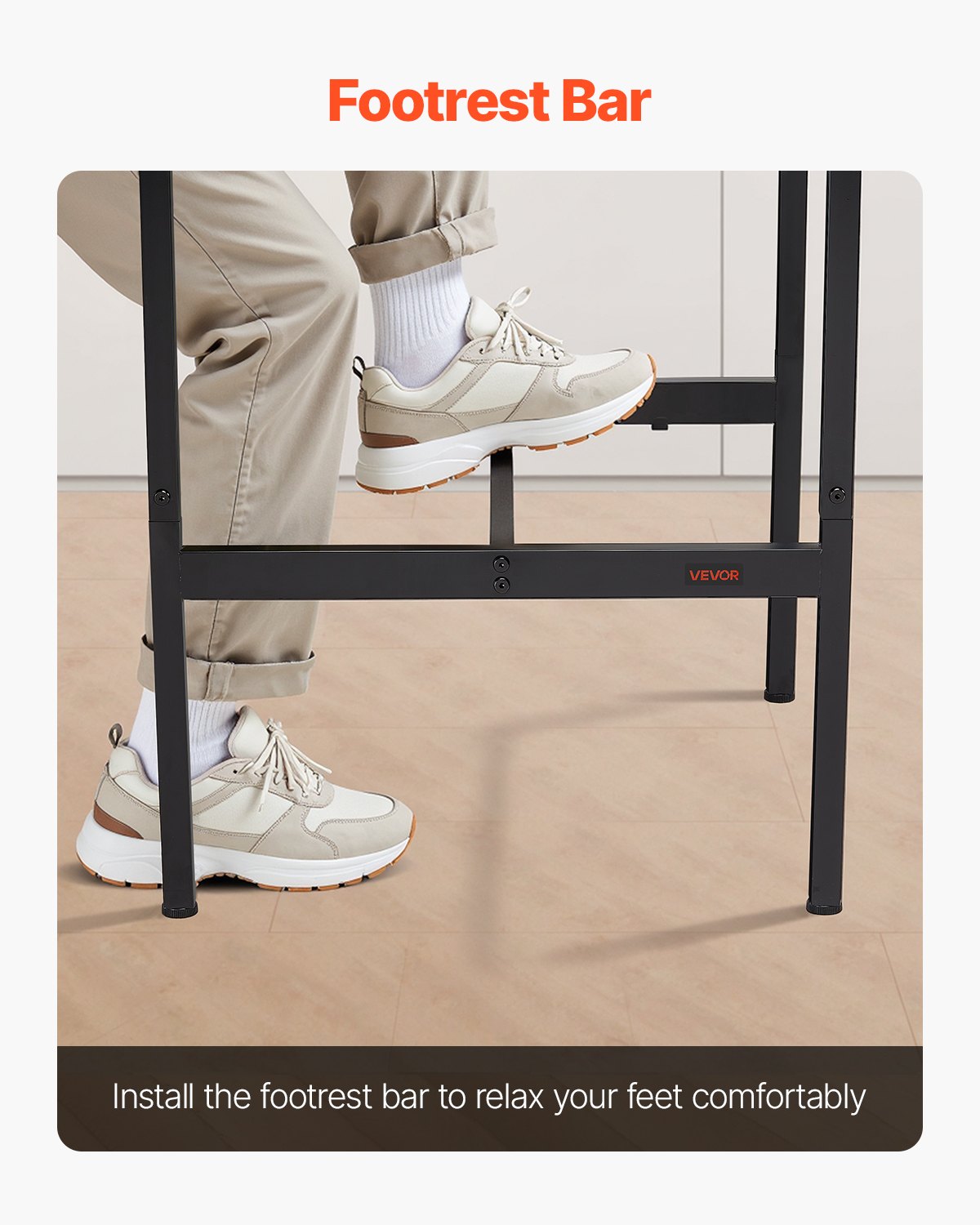 - Rock-Solid Stability: This kitchen dining table features adjustable footpads that ensure it stays balanced, even on uneven floors. Plus, the detachable footrest bar offers a comfortable spot to relax your feet, making it a practical choice for long conversations or casual dining