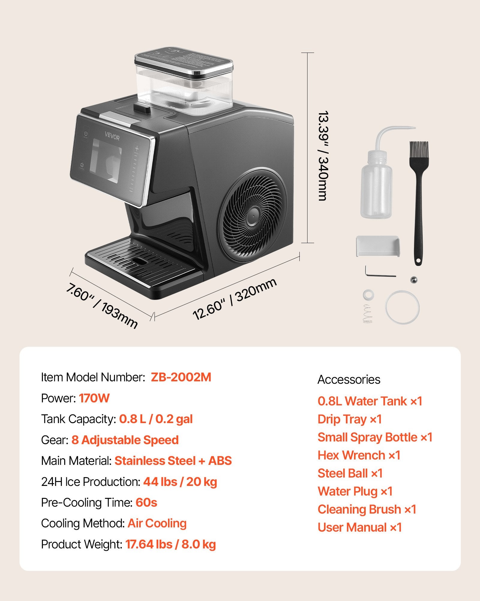 - High-Efficiency Ice Making: This snowflake ice machine features a stable air cooling system that precools in 60 seconds and makes ice in just 3 seconds after pre-cooling, producing up to 44 lbs per day, suitable for water, milk, juice, soda, or coffee, etc