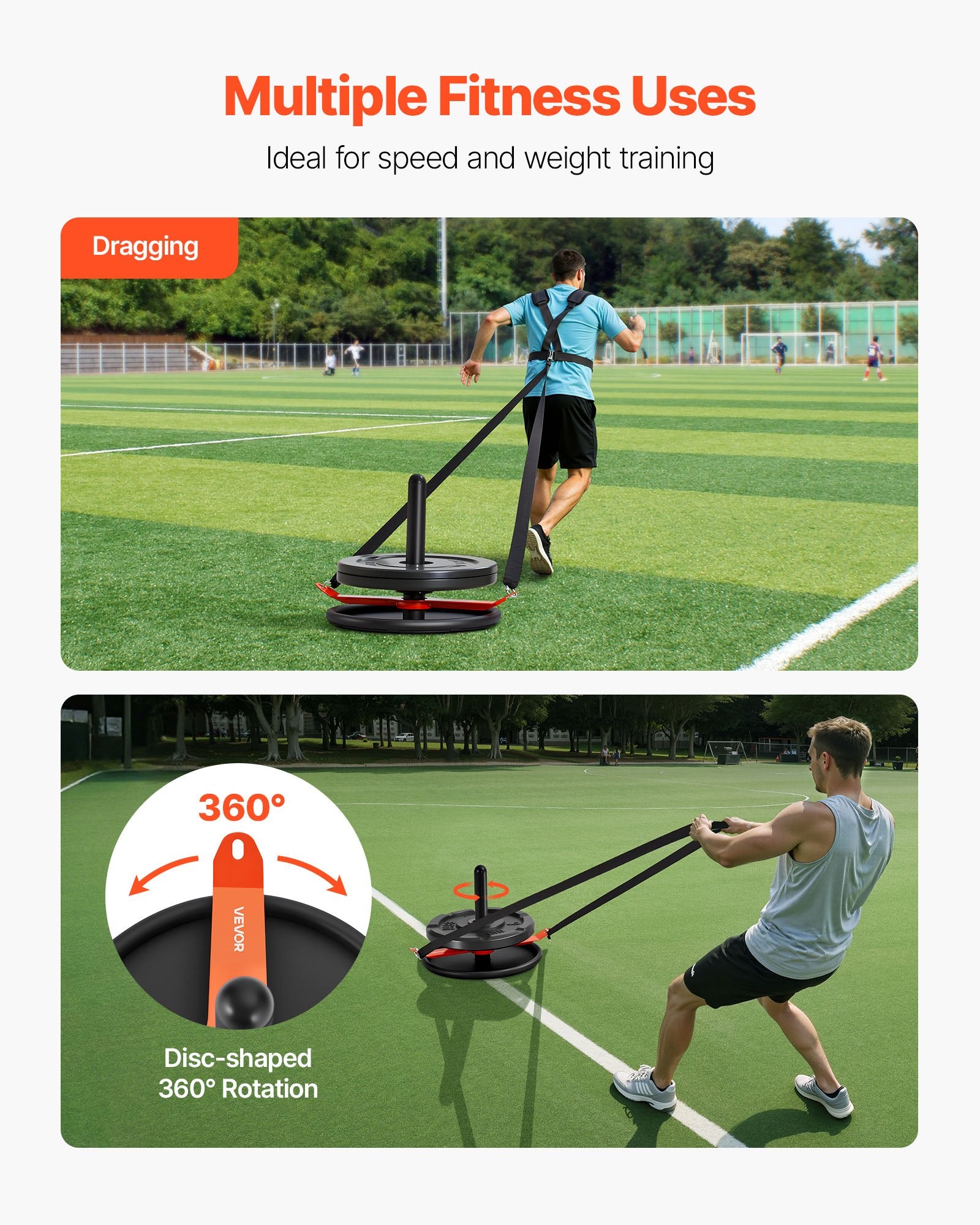 - Strength and Speed Training: This weight sled enhances full-body muscle and explosiveness through dragging. Ideal for beginners and pros. Pull hooks on both ends ensure stability, and the round design allows 360° rotation for easy turns