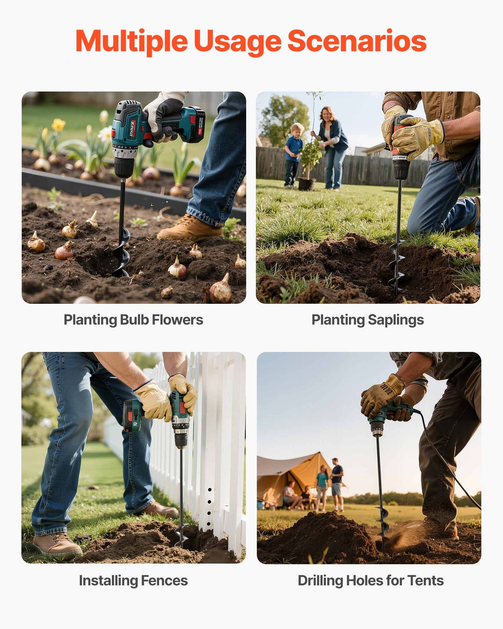 - Multipurpose Gardening Tool: More than just for bulbs, flowers, and vegetables, the auger drill bit for planting is also great for drilling holes for fence posts, tents, or outdoor decorations. A must-have for gardening, landscaping, and DIY projects alike.