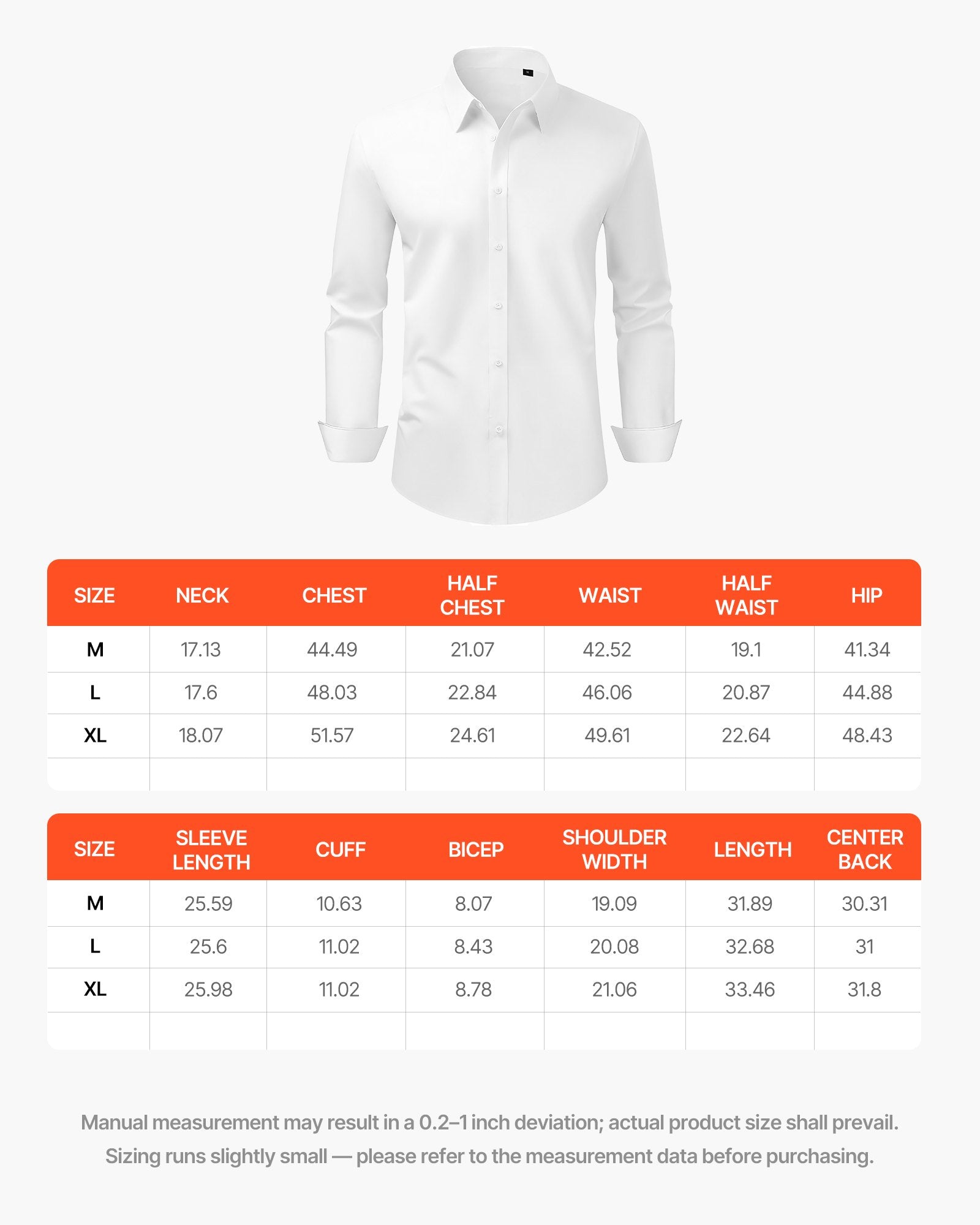 - Wrinkle-Resistant & Easy Care: Blended with polyester and spandex, this men’s formal shirt wrinkle-free and holds its shape. Ideal for travel or business trips, it stays crisp with minimal ironing