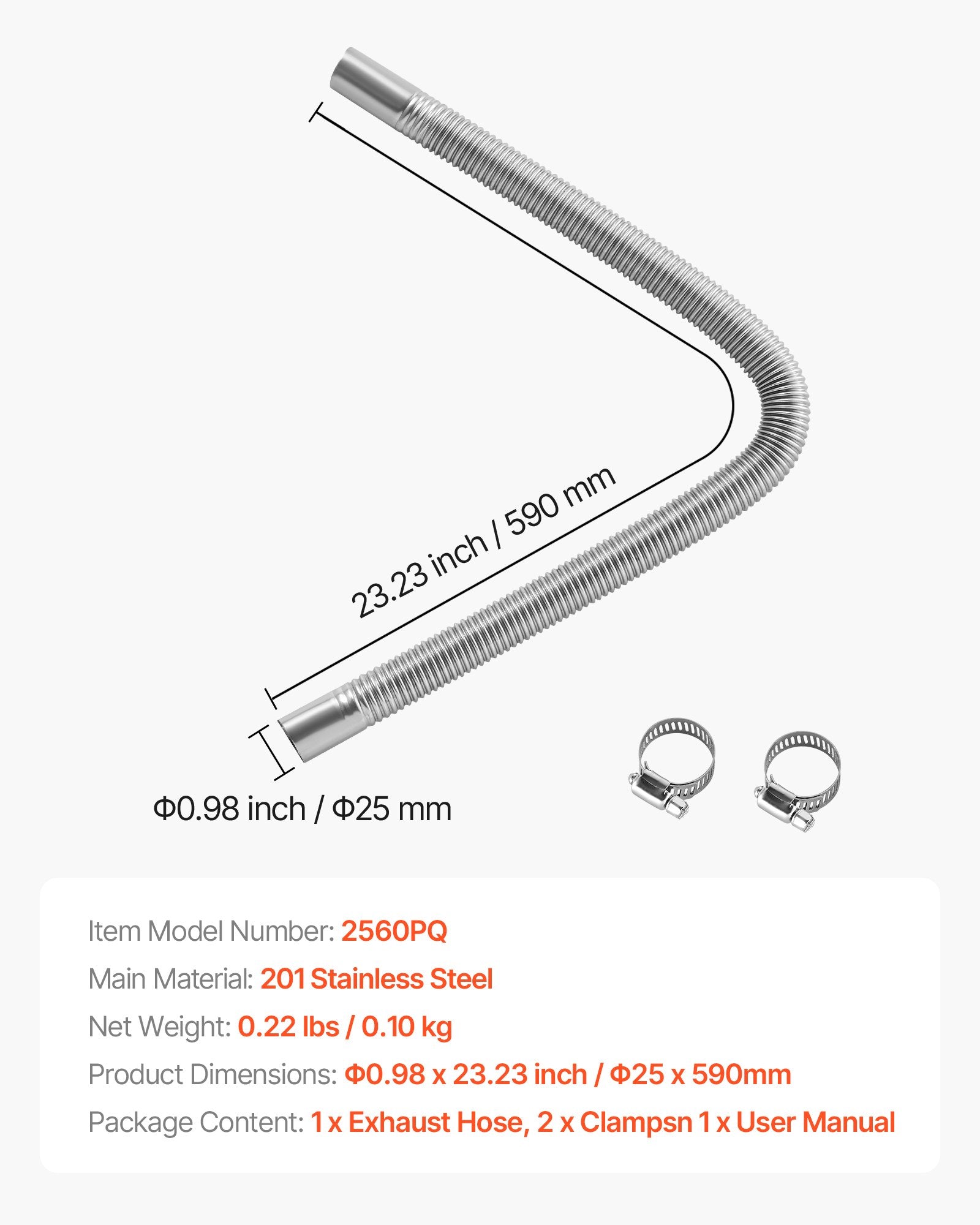 - Exhaust Pipe Package: This diesel heater flexible exhaust pipe kit includes a 23.6 inch / 600 mm exhaust pipe and 2 clamps, providing all components required for installation and maintenance. Designed for most diesel heaters, it ensures smooth exhaust flow and reliable performance