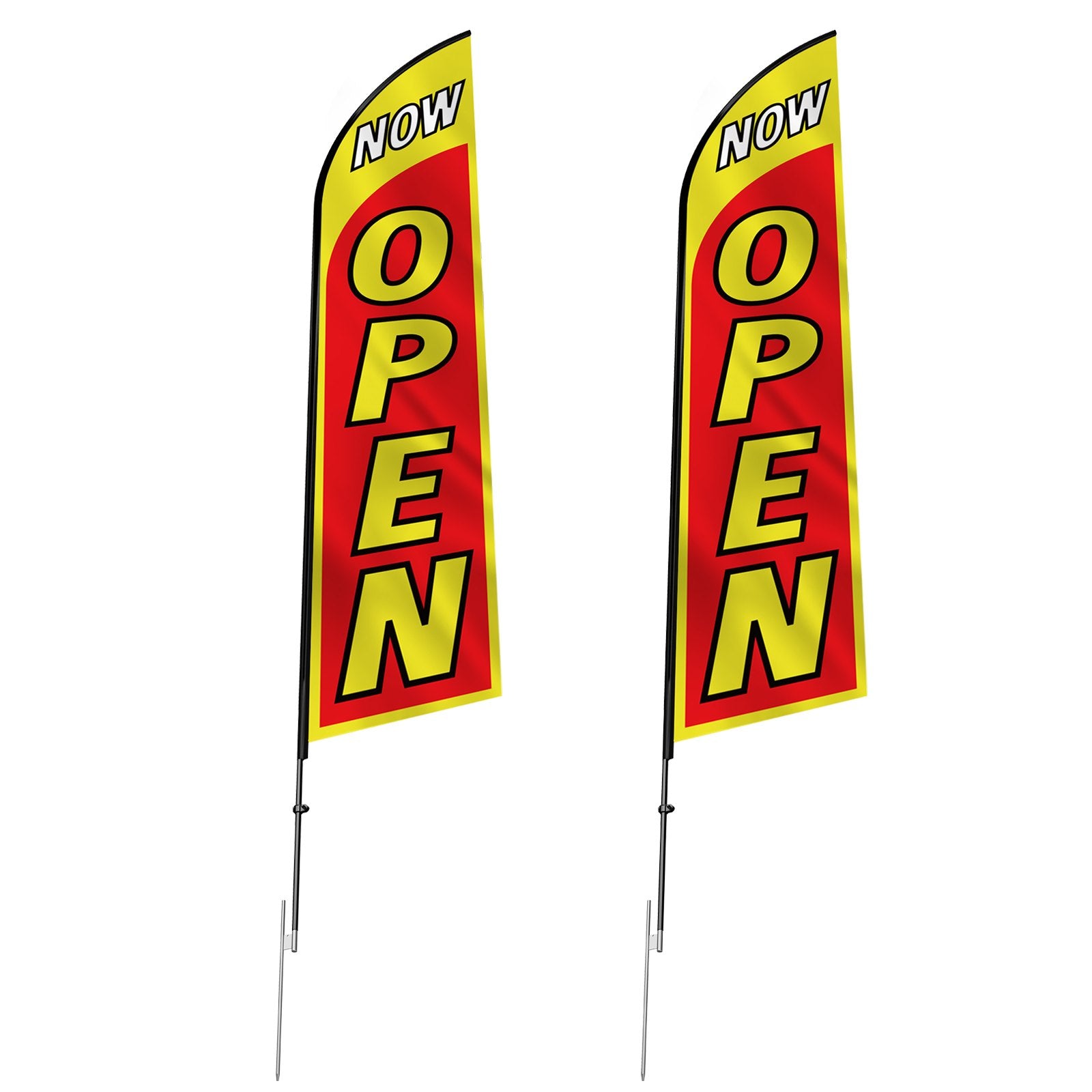 Open Flags with Pole Kit, Advertising Flags for Business Outside, Advertising Feather Flag Kit, Includes 2 Banner Flags, 2 Poles, 2 Ground Stakes, Open Sign Swooper Flags for Businesses 16.3 FT