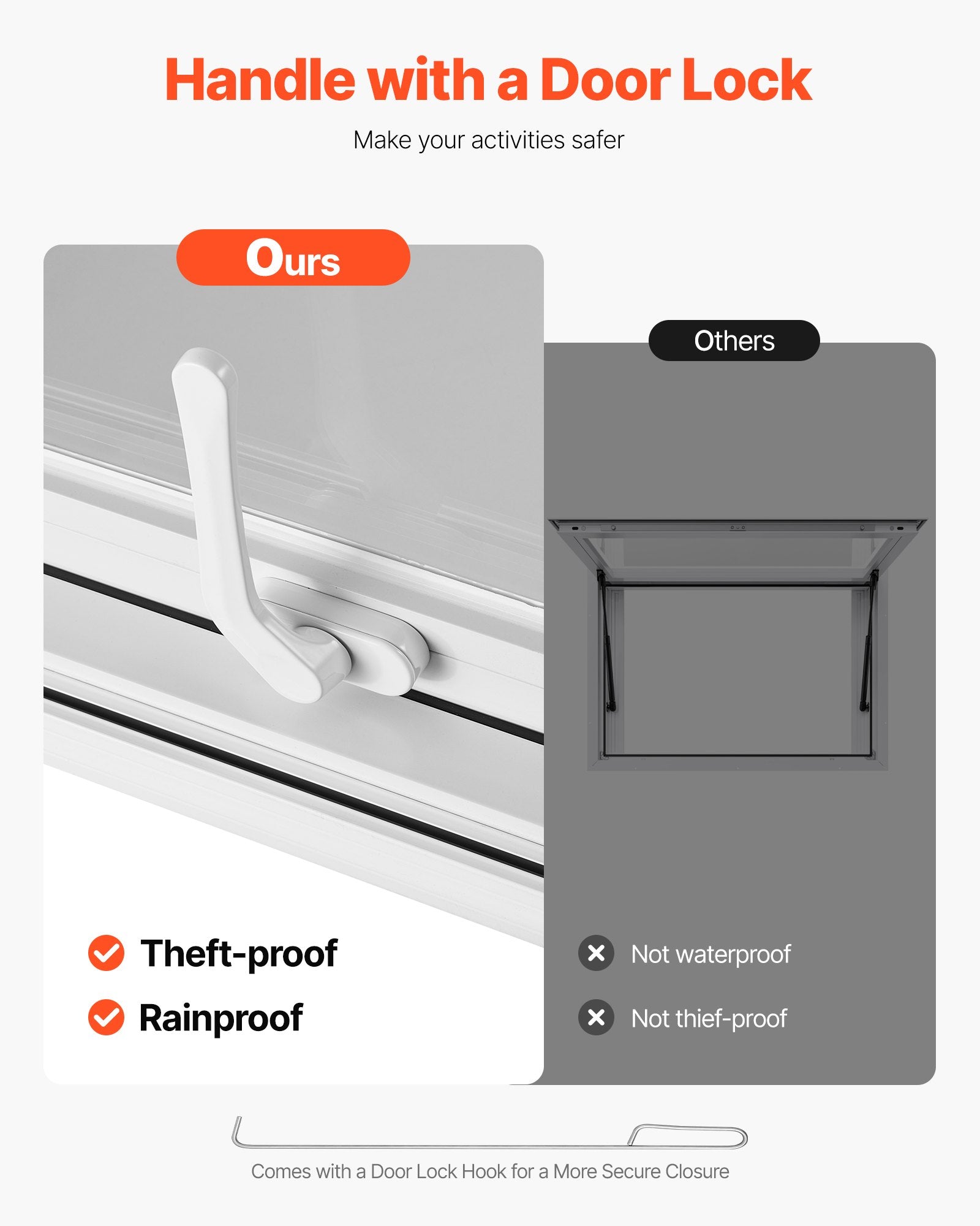 - Easy to Open: With an 85° wide opening angle and a clear view, the concession truck window is equipped with two hydraulic rods for opening. The included awning guards against heavy rain, sun, and theft, enabling you to serve customers with ease