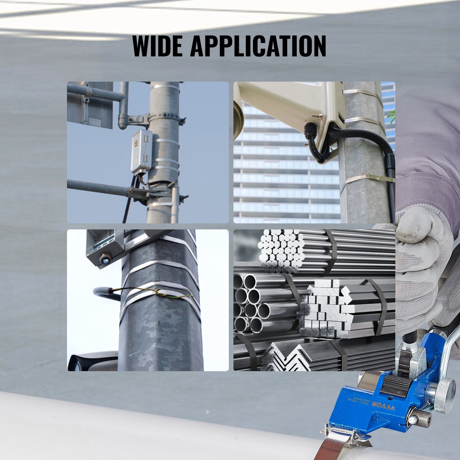 Banding Strapping Kit with Strapping Tensioner Tool, 100 ft Length 304 Stainless Steel Banding, 100 Metal Seals, Pallet Packaging Strapping Banding Kit, Banding Packaging Strapping for Packing