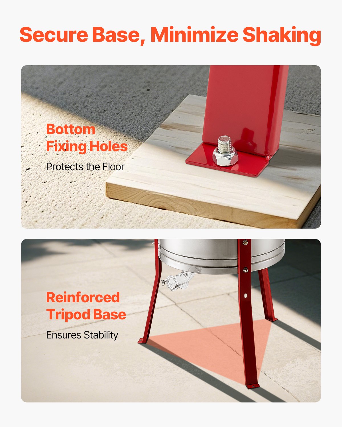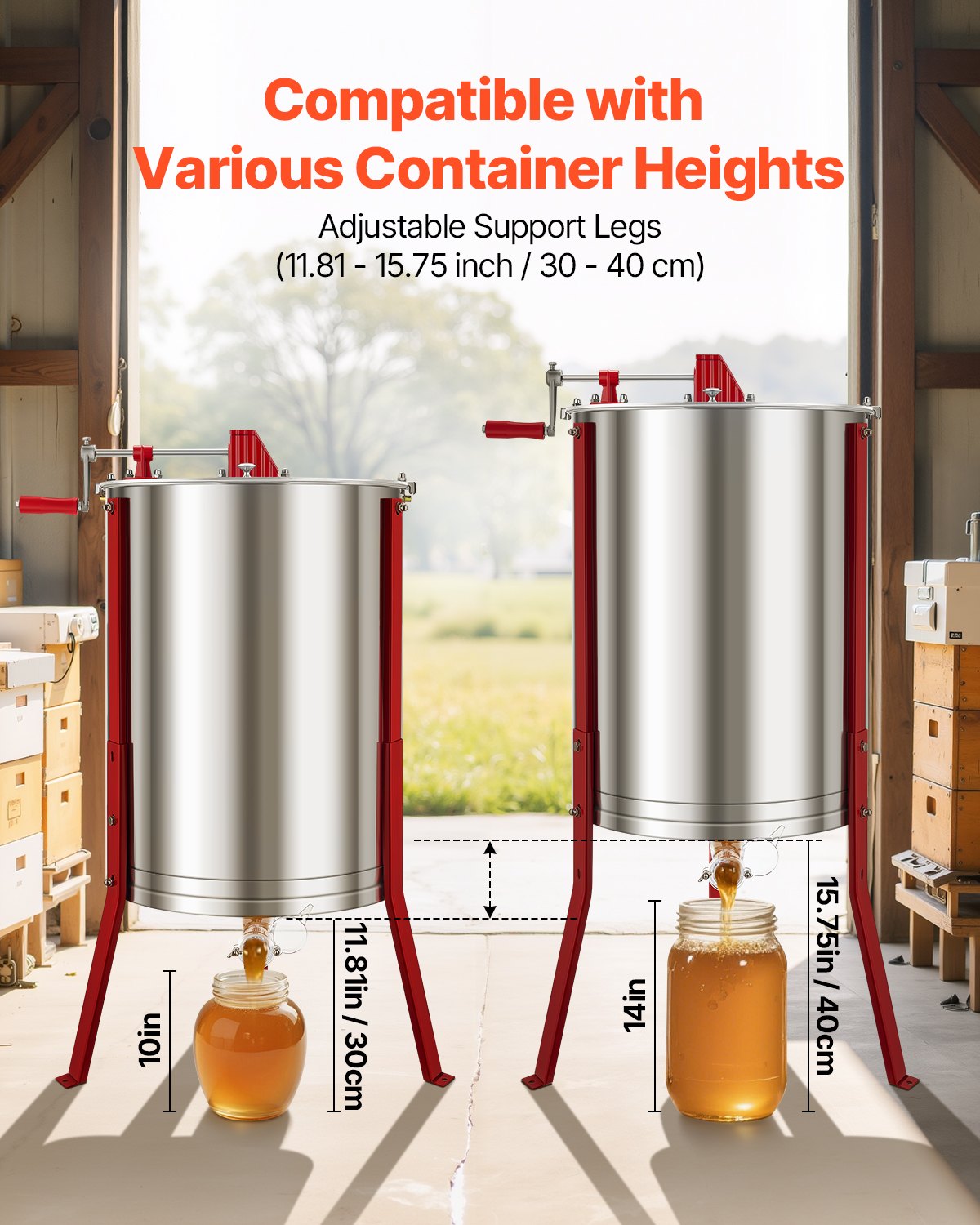 - Stability & Adjustable Height: With a triangular 3-leg structure, this honeycomb extractor offers enhanced stability. The height is adjustable from 11.81 inches (30 cm) to 15.75 inches (40 cm) to accommodate different users' needs.