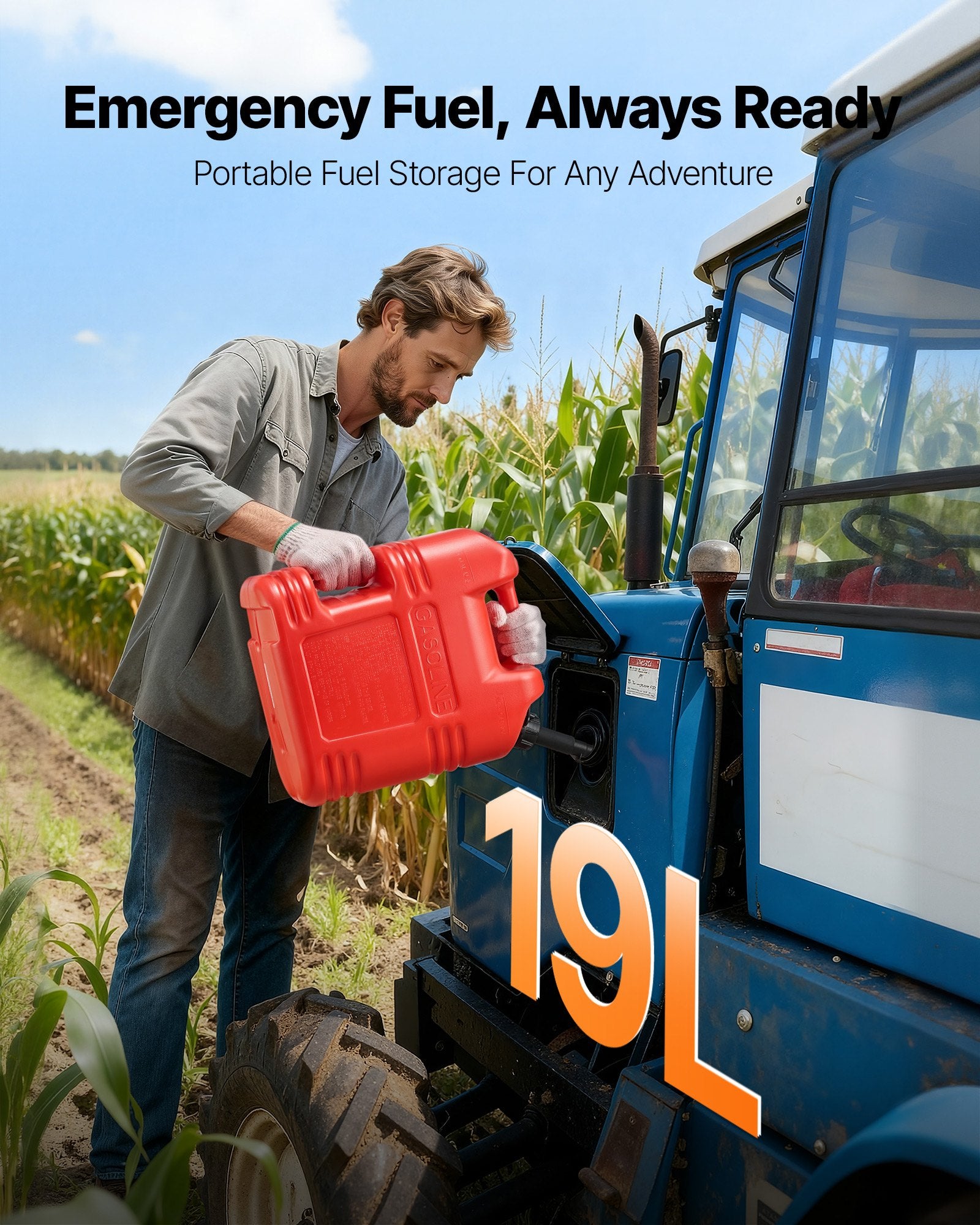 - Compact Size: Need backup fuel without losing space? This 19L gas can (13.4 x 9.1 x 15.2 inches) fits right in your trunk. It's lightweight yet reliable for trips, camping, or outdoor work