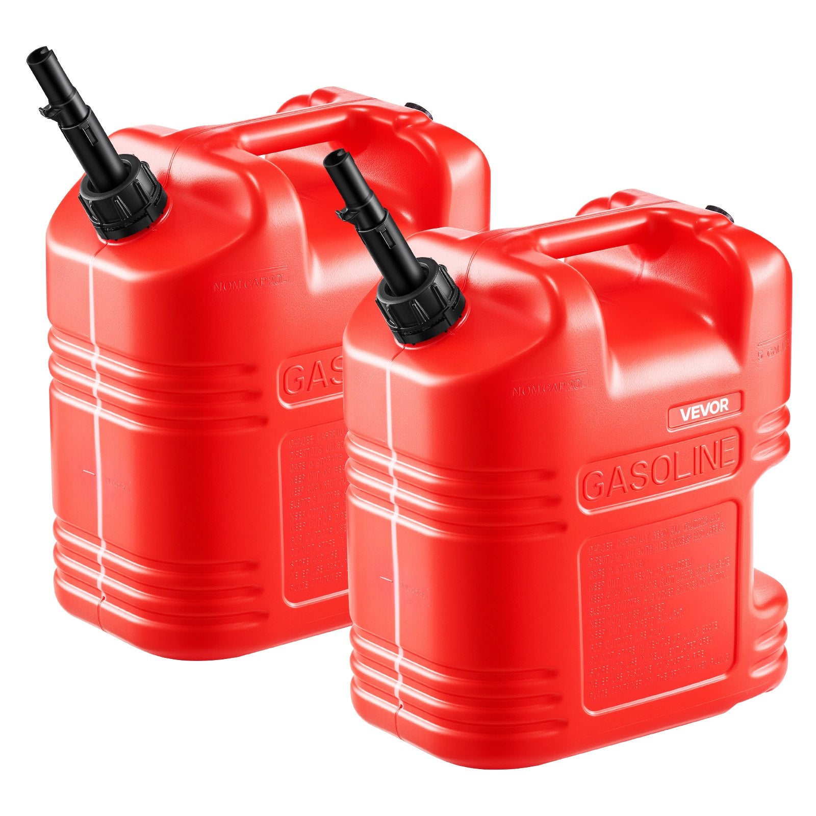 Fuel Container, 19 L, Gas Tank with Spout & Clear Scale, 15 L/min Max Flow Rate, Secure & Leak-proof, Portable Flat Fluid Container for Most Cars Motorcycle ATV UTV, Red, 2 Packs