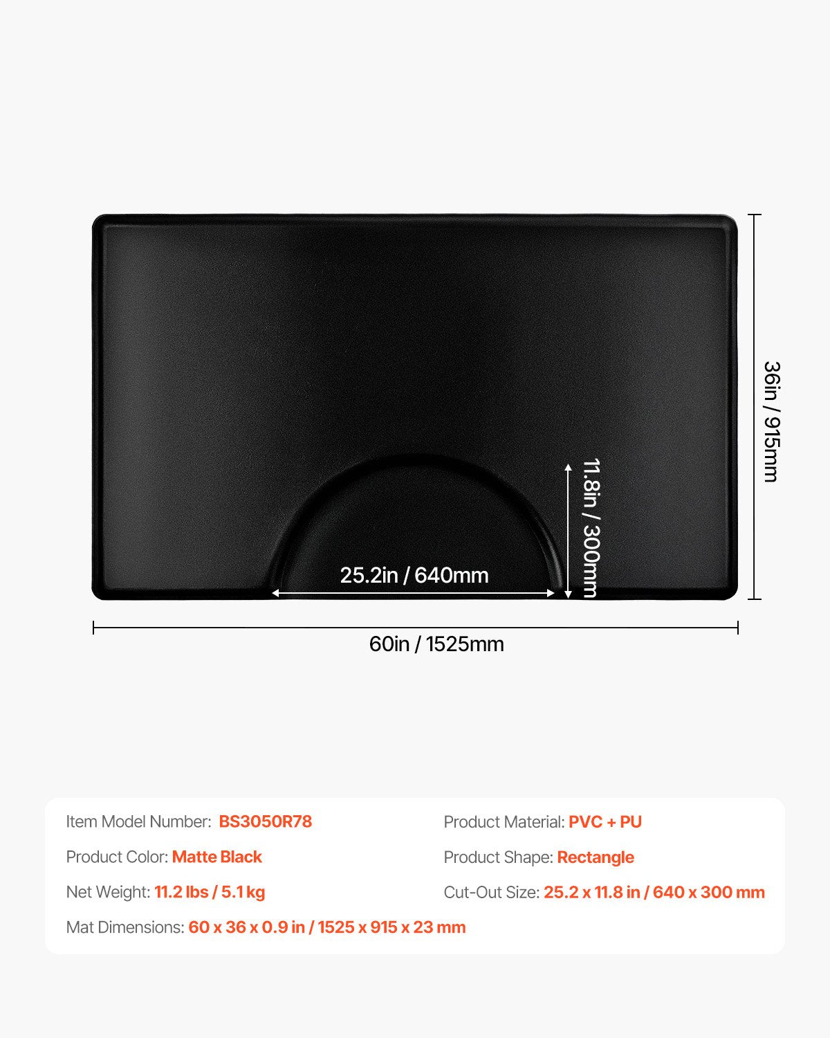 - Mat Dimensions: 60.0 x 36.0 x 0.9 in / 1525 x 915 x 23 mm