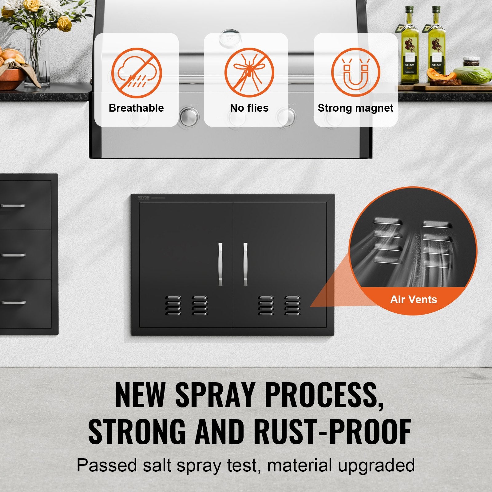 BBQ Access Door, 762x533 mm Double Outdoor Kitchen Door, Cold Plate Flush Mount Door, Wall Vertical Door with Handles and Ventss, for BBQ Island, Grilling Station, Outside Cabinet