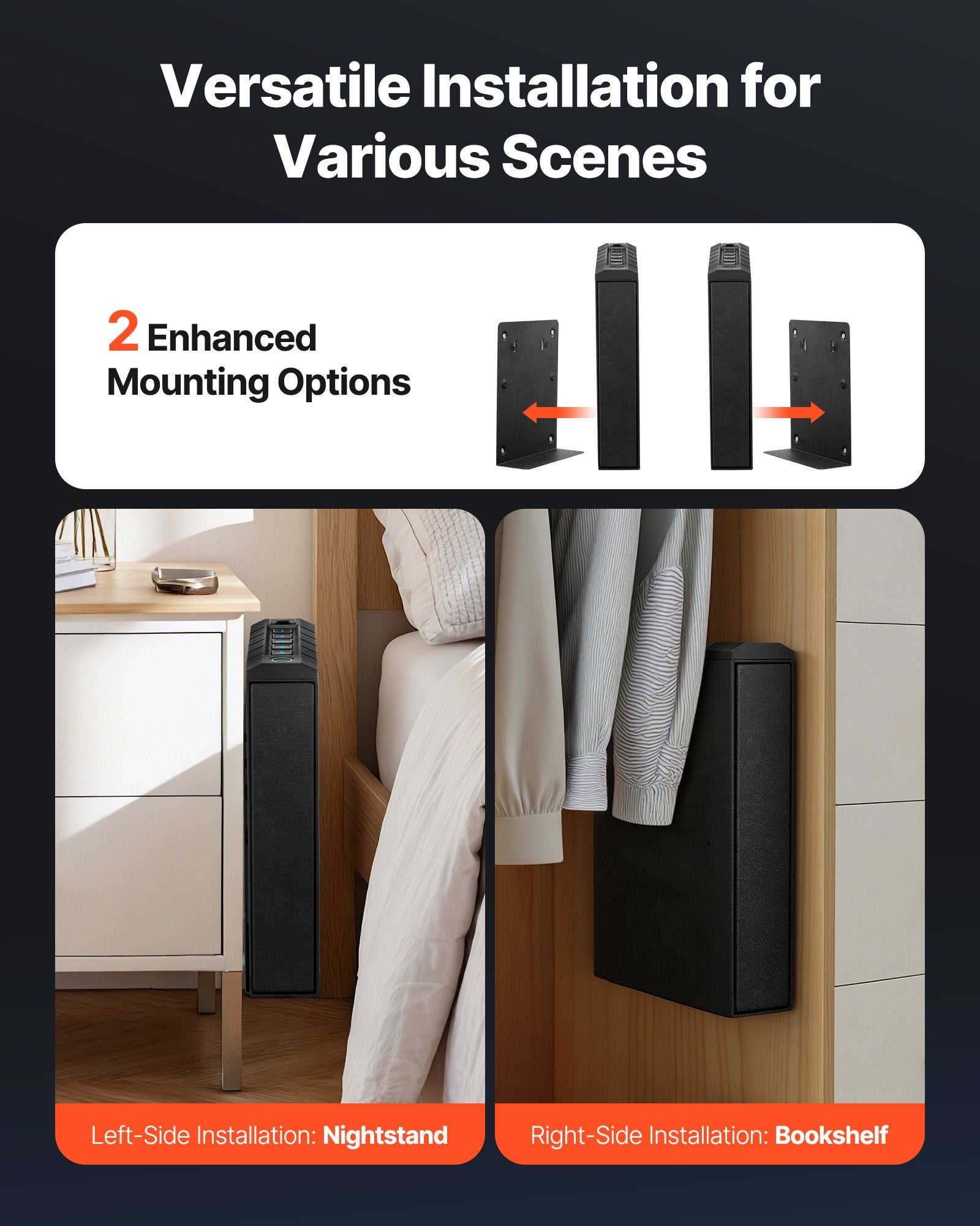 - Easy Installation: This pistol gun safe comes with a pre-drilled mounting plate and 3 installation options—left, right, or top. Its compact design fits desks, bookshelves, or nightstands for quick and convenient access at home, office, or business