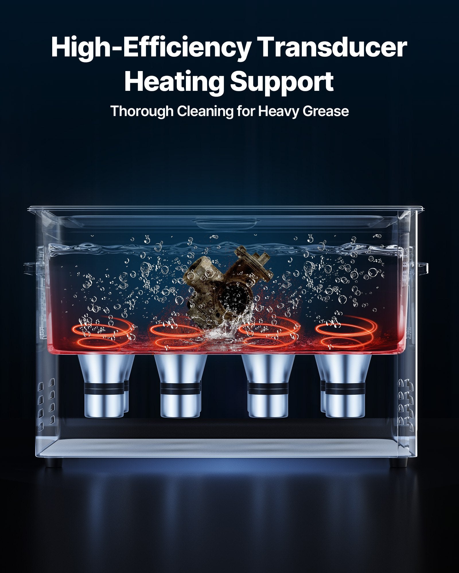 - Advanced Transducer Technology: Equipped with high-efficiency transducers, our ultrasonic cleaner delivers explosive cleaning power that breaks down stubborn grease and grime. It provides 360° deep cleaning for precision instruments, removing dirt and oils