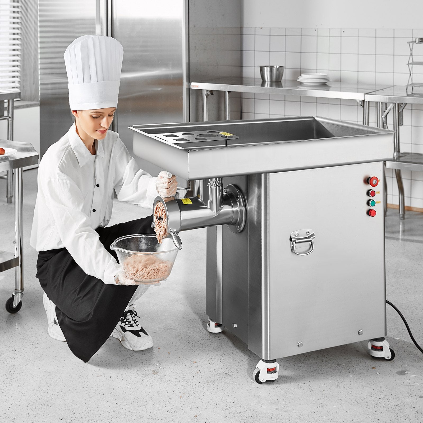 - Fast Meat Grinding: The commercial cabinet-style meat grinder, mouth size 42#, features a highly efficient 4000W pure copper motor capable of grinding 36.7 lbs of meat per minute. It can operate continuously for over 6 hours, making it ideal for large-scale commercial meat grinding needs. Avoid letting the grinder idle for too long as it may damage the motor. Remember to promptly turn off the power when not in use.