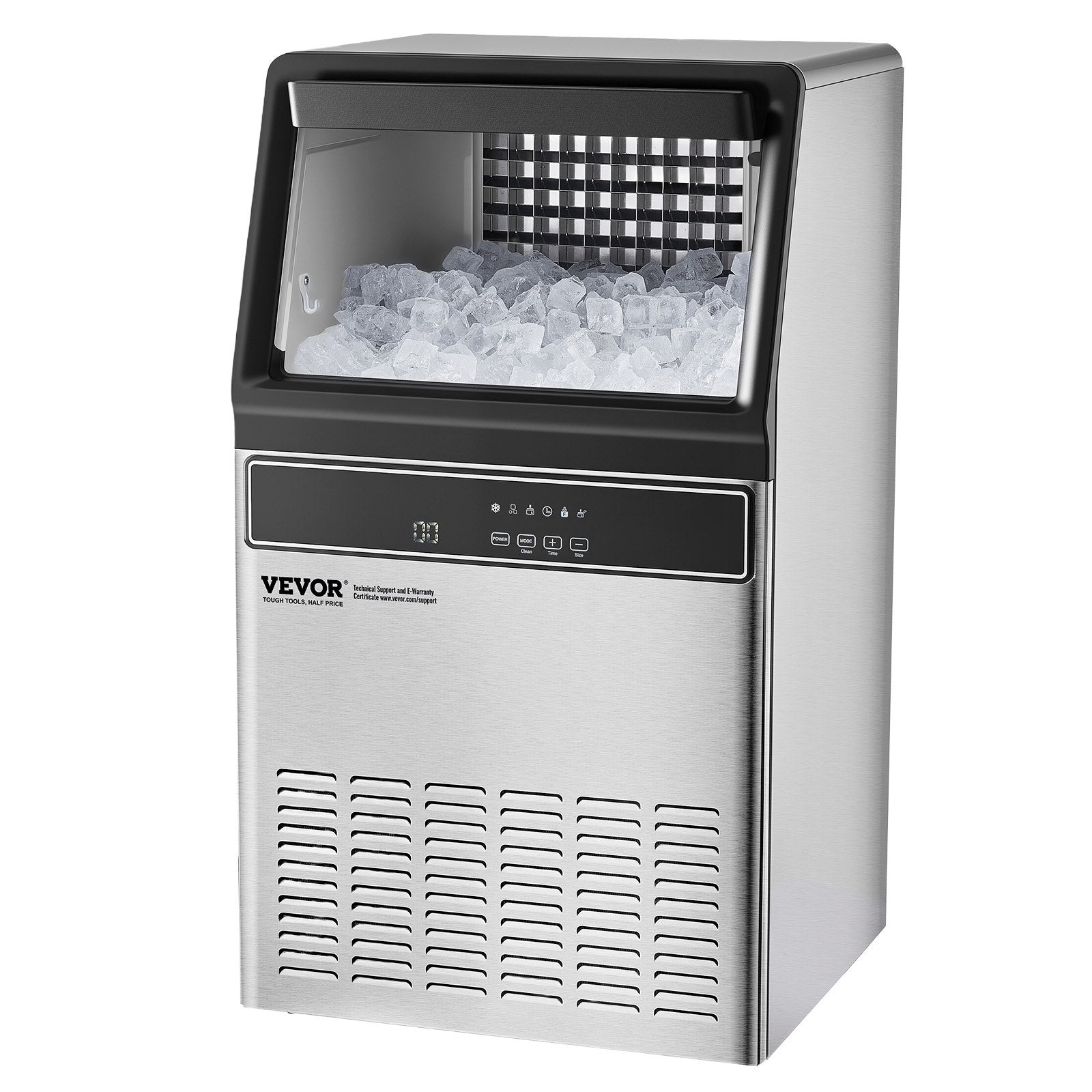 - Light Commercial Ice Maker: Our commercial ice maker is designed with 50 pcs ice trays and can produce up to 110 lbs of ice cubes per day (test conditions: 50-100.4℉/10-38℃ ambient temperature). This compact ice maker has a generous storage capacity of 33 lbs and fits perfectly in your home, coffee shop, bar, beverage store, or restaurant