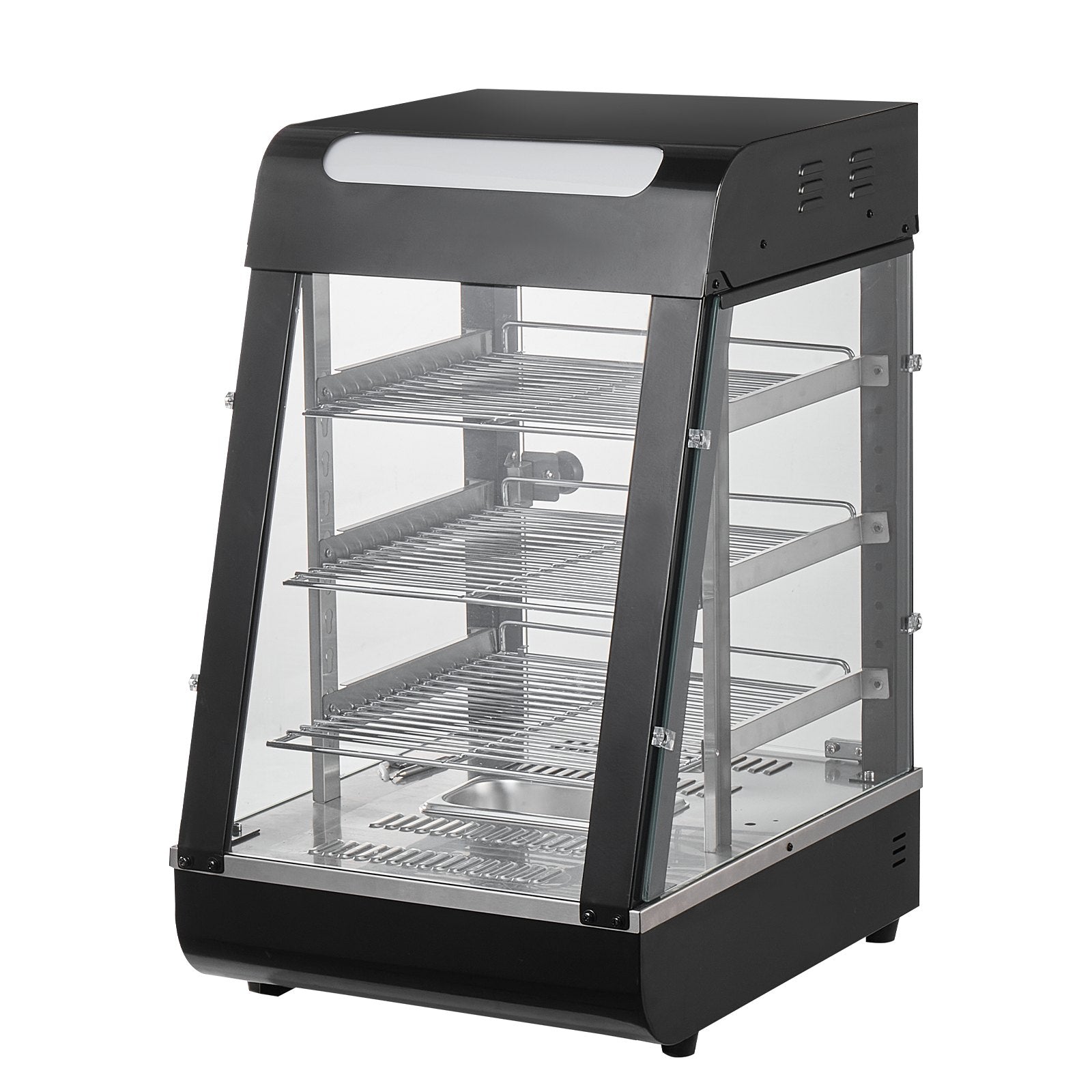 - 3-Tier Large Space: Dimensions: 15.16 x 18.50 x 25.20 inch / 385 x 470 x 640 mm. Our countertop food display case features 3 spacious food-grade shelves, allowing you to place different sizes of food freely. It is ideal for holding and storing pizza, egg tarts, fried chicken, or burgers, ensuring the food stays fresh for a long time.
