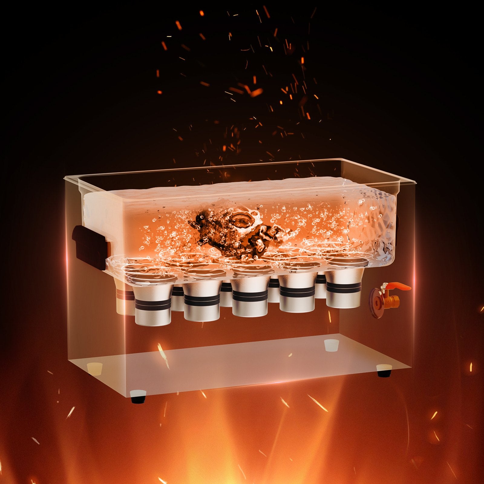 - Advanced Transducer Technology: The efficient transducer, combined with ultrasonic shock waves, instantly breaks down tough grease. With 360° cleaning of precision instruments, it easily eliminates stubborn dirt, and oil without damaging the items. Whether for everyday items or professional cleaning needs, you can use it with confidence.
