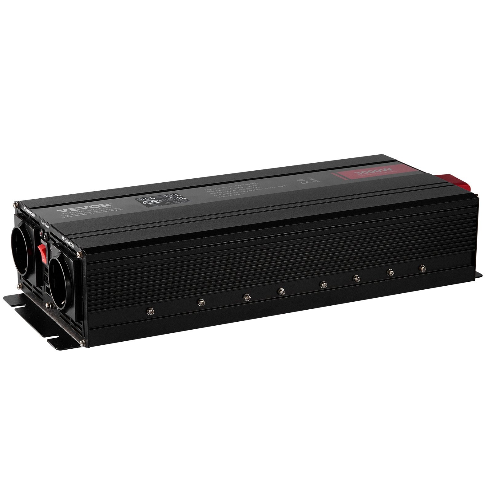 Modified Sine Wave Inverter, 3000Watt, DC 12V to AC 230V LCD Display Power Inverter with 3 AC Outlets 2 USB Port 1 Type-C Port 10 Spare Fuses, for Large Household Equipment, CE FCC Certified