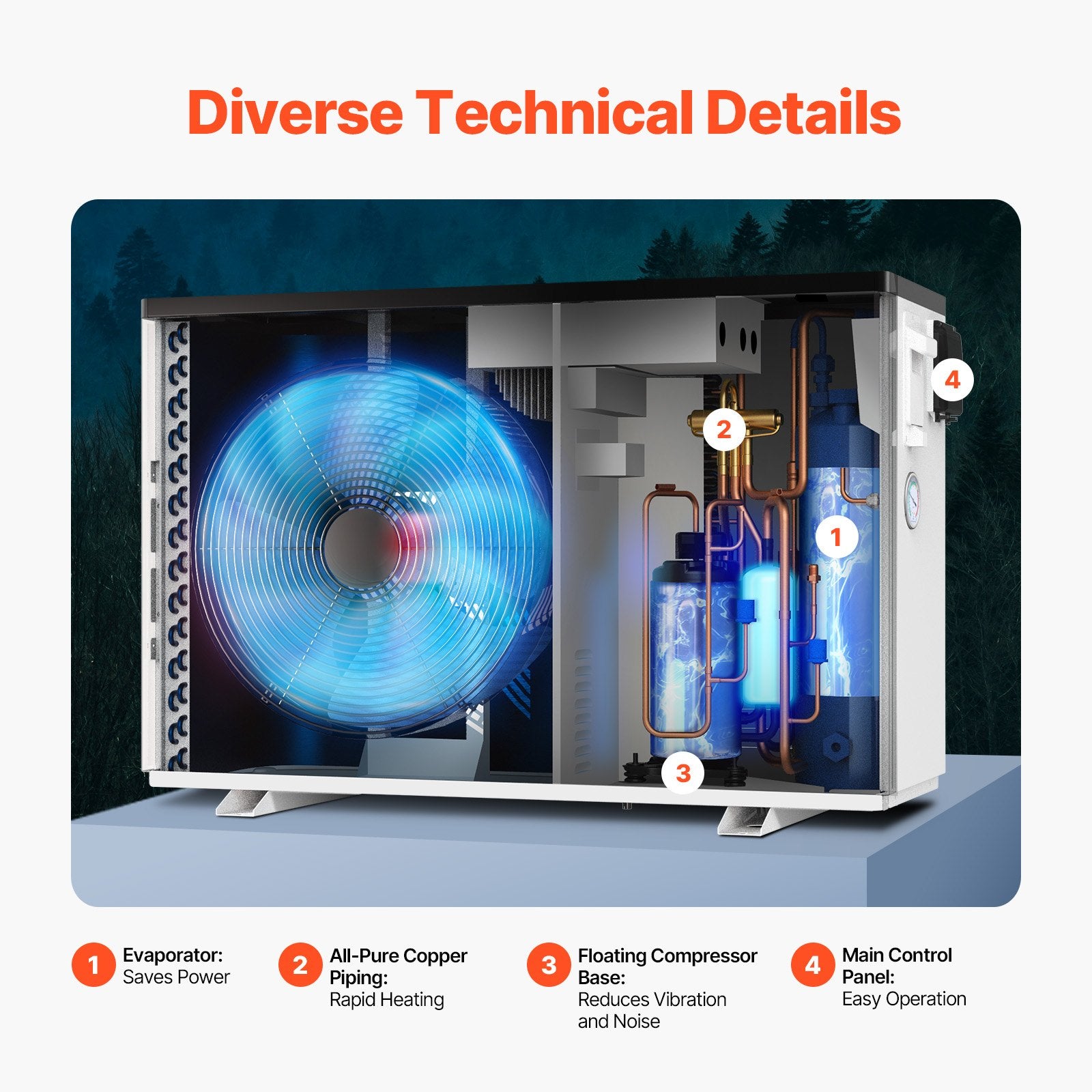 - Long-Lasting Durability: Featuring a high-performance compressor and titanium tube heat exchanger, this pool heat pump resists salt, chlorine, and corrosion, ensuring stable performance and longevity while minimizing maintenance and replacement needs.