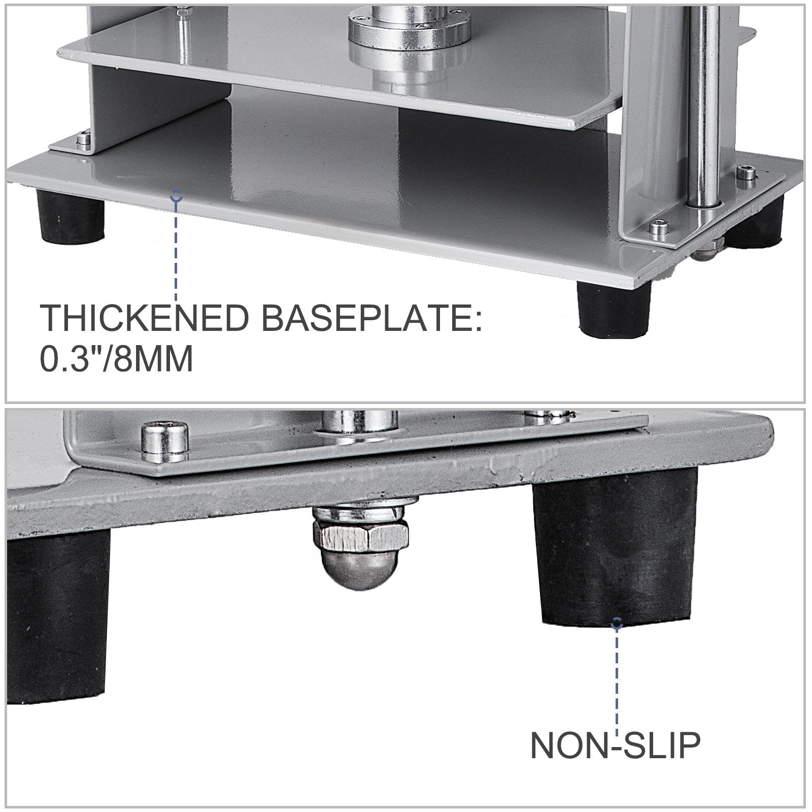 - Stable Structure: Non-slip foot pads reduce damage on the tabletop and increase friction to make the bookbinding tool more stable. On the other hand, two balance rods and 0.3"/8 mm baseplate thickness facilitate it to bear more substantial pressure evenly.