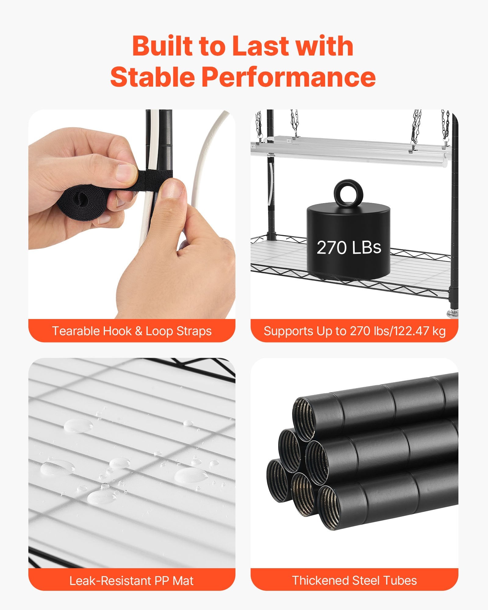 - Leak-Proof & Secure: PP trays feature a leak- and drip-proof design to protect circuits from water. The metal plant stand for indoor plants with anti-drop structure helps keep plants securely in place, creating an ideal indoor growing environment.