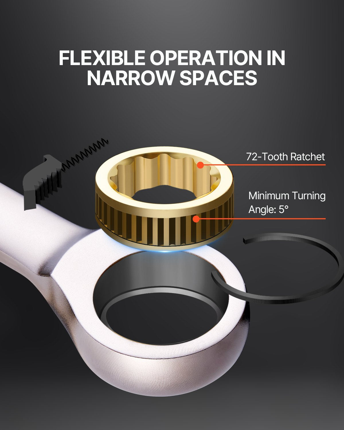 - 72-Tooth Ratchet: Designed with 72 teeth, this ratchet wrench set allows a minimal working angle of only 5°, making it ideal for your precise operations and smooth handling, even in tight spaces.