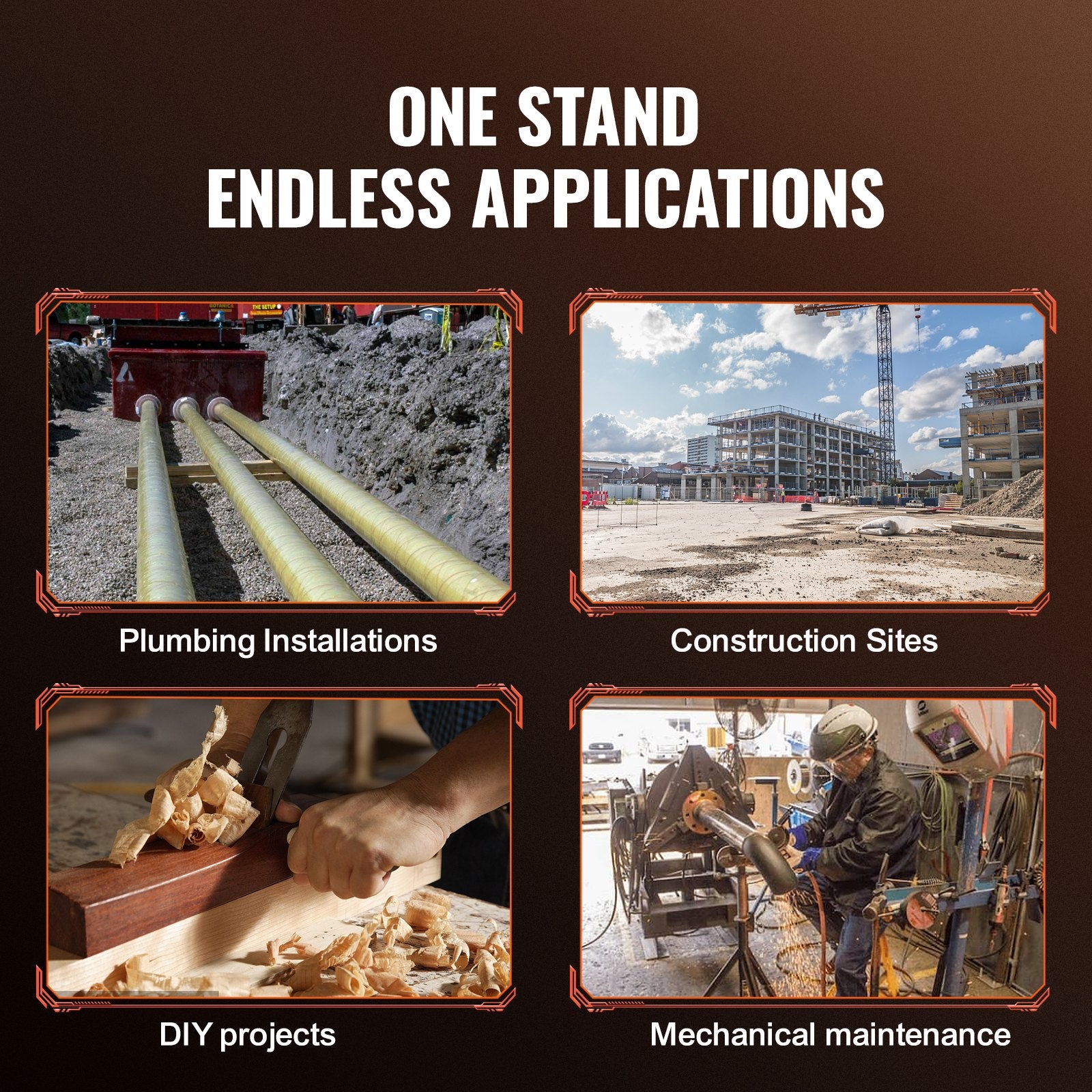 - Unwavering Support: Experience rock-solid stability with VEVOR pipe jack stand. Designed with a stable triangular base, it effortlessly supports up to 2500 pounds and accommodates pipes ranging from 1/2 to 12 inches in diameter.