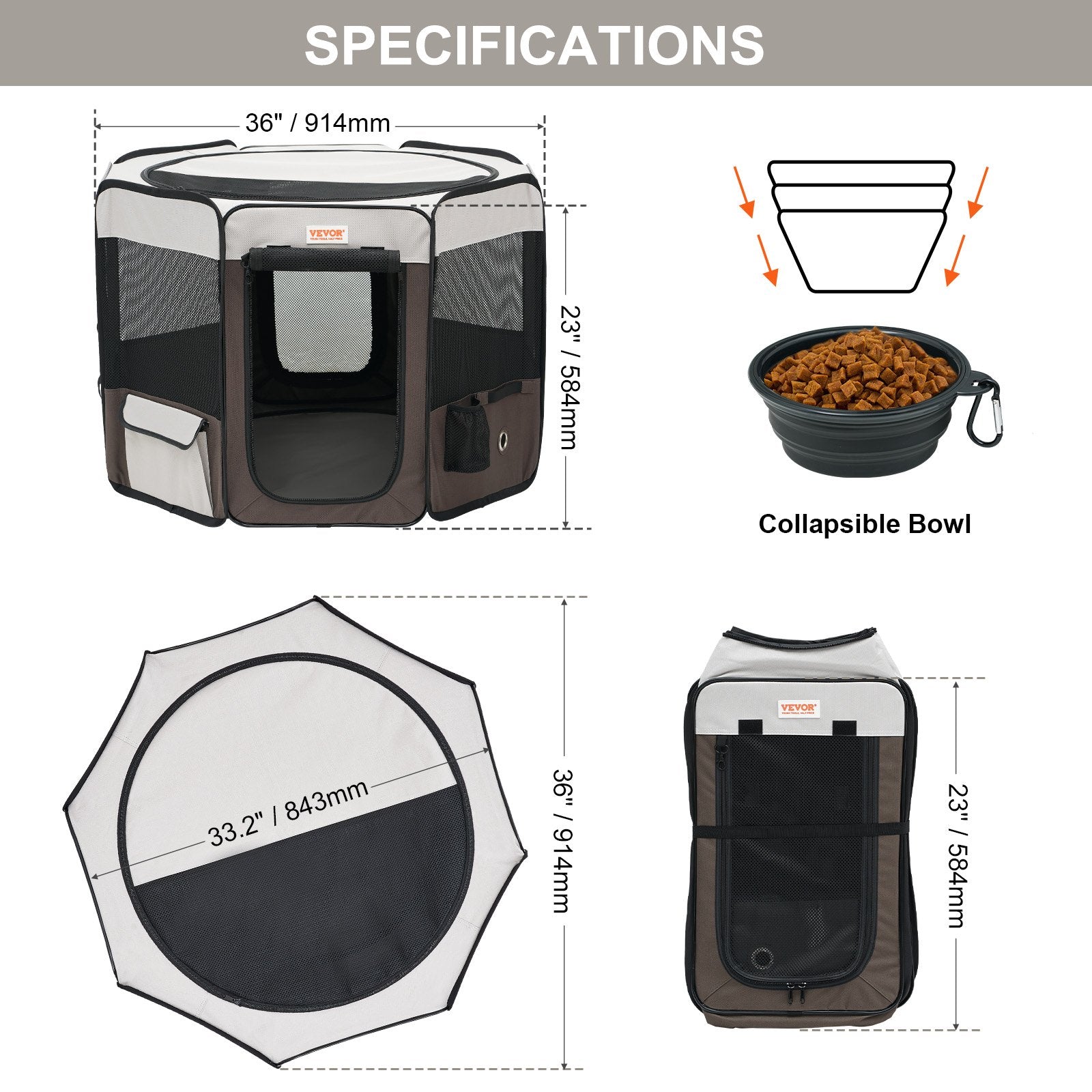 Hopfällbar lekhage för husdjur, 36 tums bärbar lekhage för hundar, bur för valpar, hundar, katter, premium vattentät 600D oxfordtyg, avtagbar dragkedja, för inomhusbruk utomhus, resor och camping (åttkantig, M)