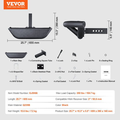 - Robust och hög lastkapacitet: Tillverkad av högkvalitativa material erbjuder detta dragkroksteg pålitlig styrka, med en lastkapacitet på upp till 158,7 kg. Det är motståndskraftigt mot böjning under tryck och bibehåller sin form och hållbarhet över tid. Dessutom motstår dess korrosions- och rostbeständiga egenskaper hårda väderförhållanden, vilket förlänger dess livslängd.