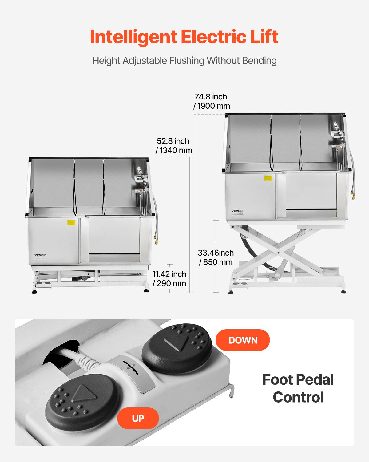 Electric Lift Dog Washing Station, 127 cm Professional Stainless Steel Pet Grooming Tub w/ PE Water Filter Board, Faucet & Showerhead Dog Bathtub Washing Sink for Multiple Pets (Right Door)
